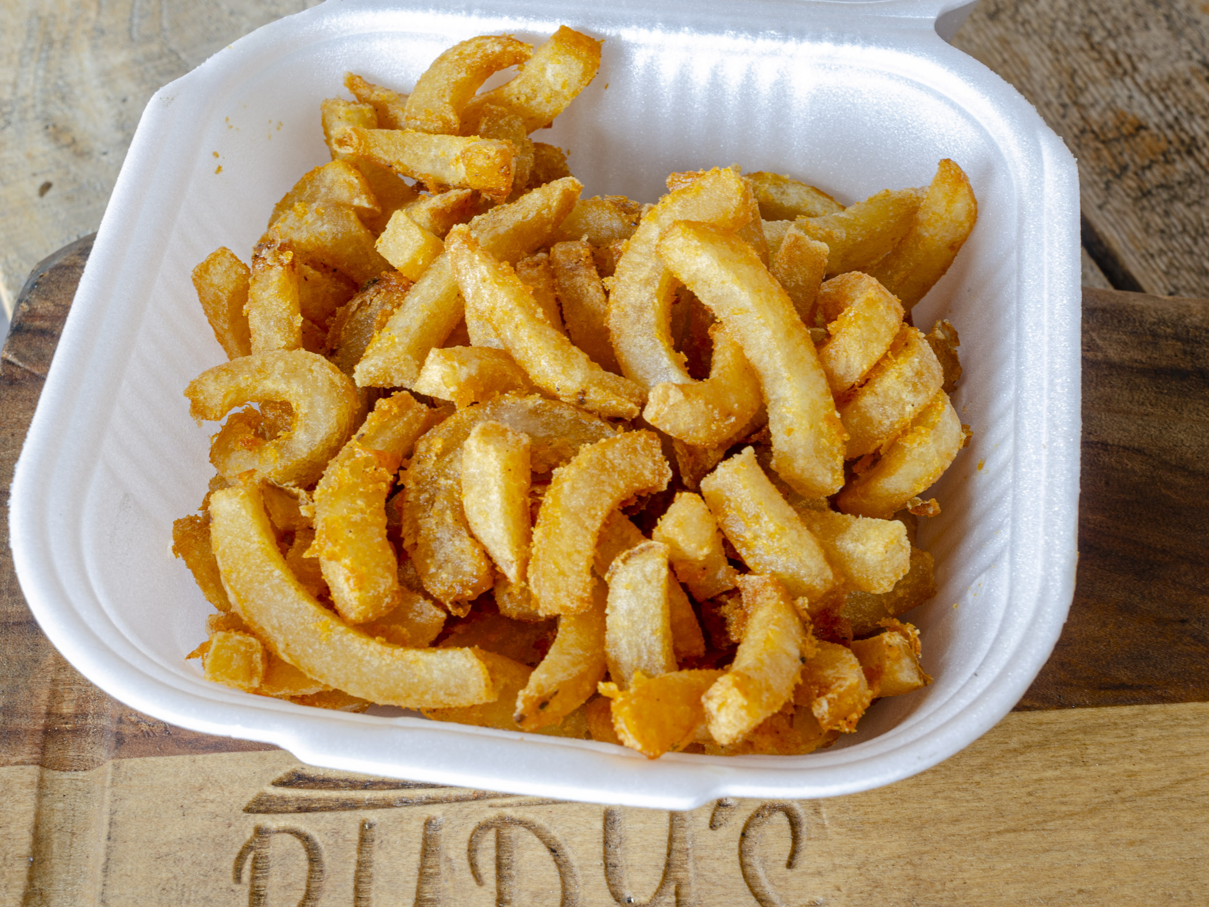 Deliciosas papitas fritas curveadas.