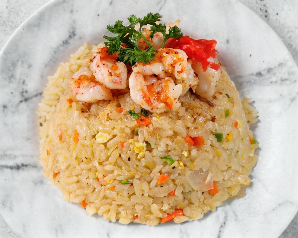 Arroz frito con verduras y camaron