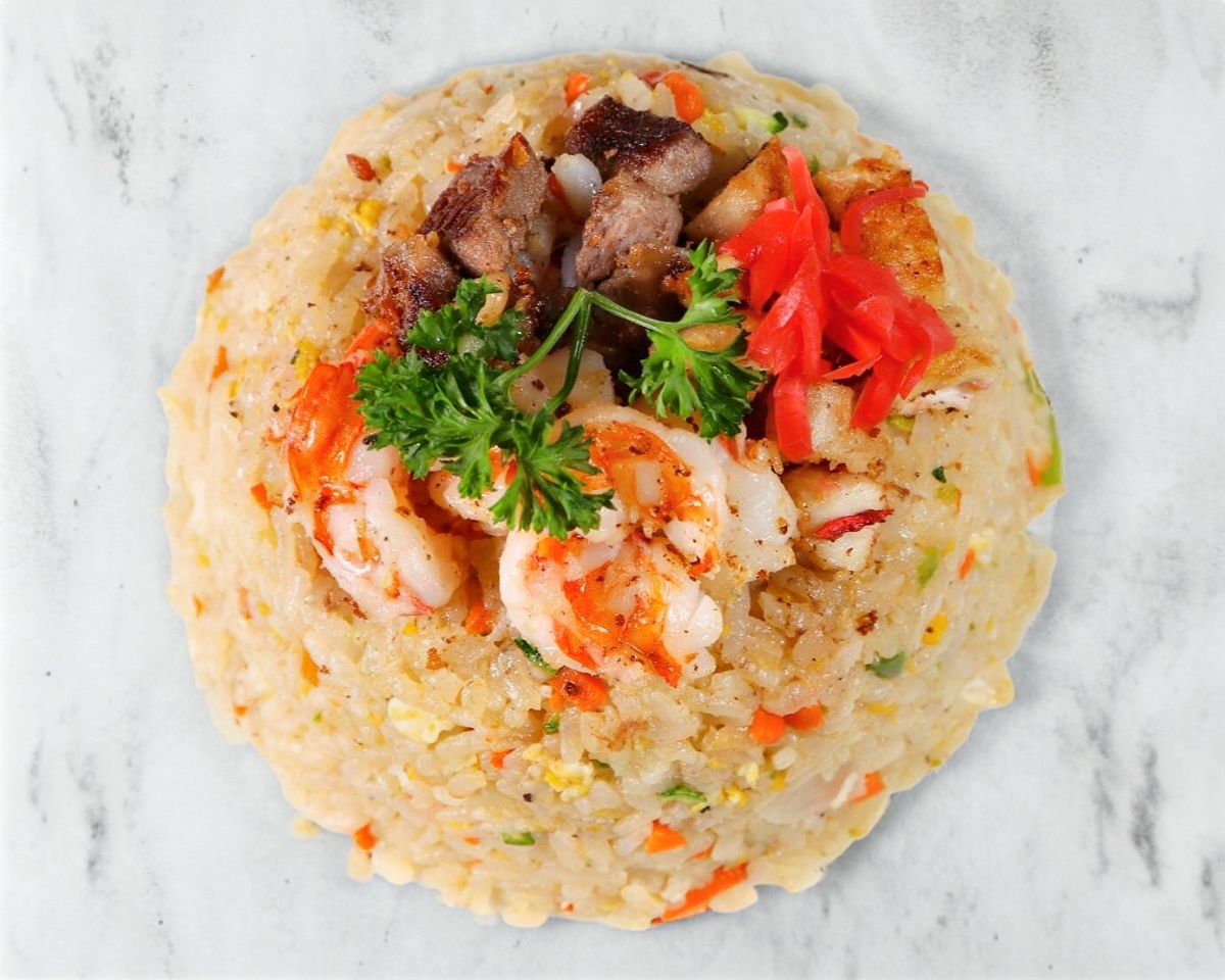 Arroz frito con verduras mixto ( Rib eye, pollo y camaron )