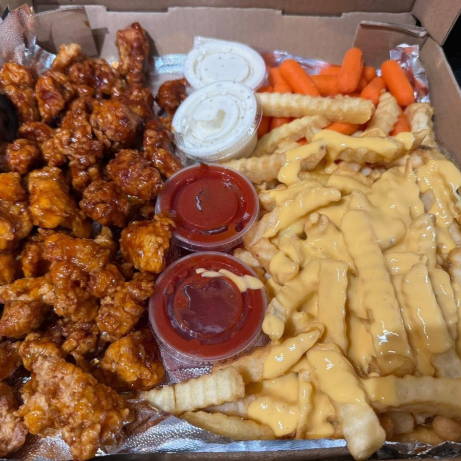Kilo de boneles 2 salsas a elegir, papas, ranch, catsu, zanahoria