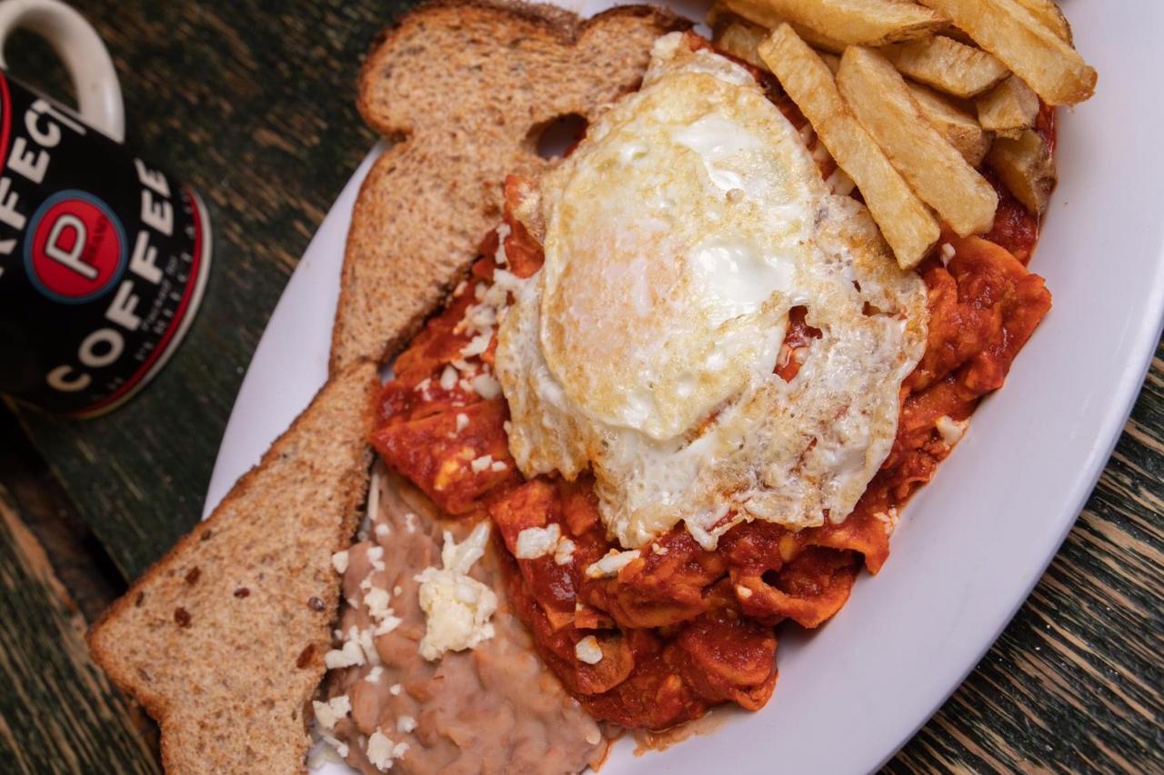 Ricos chilaquiles, verdes o rojos, picositos. Preparados al momento.