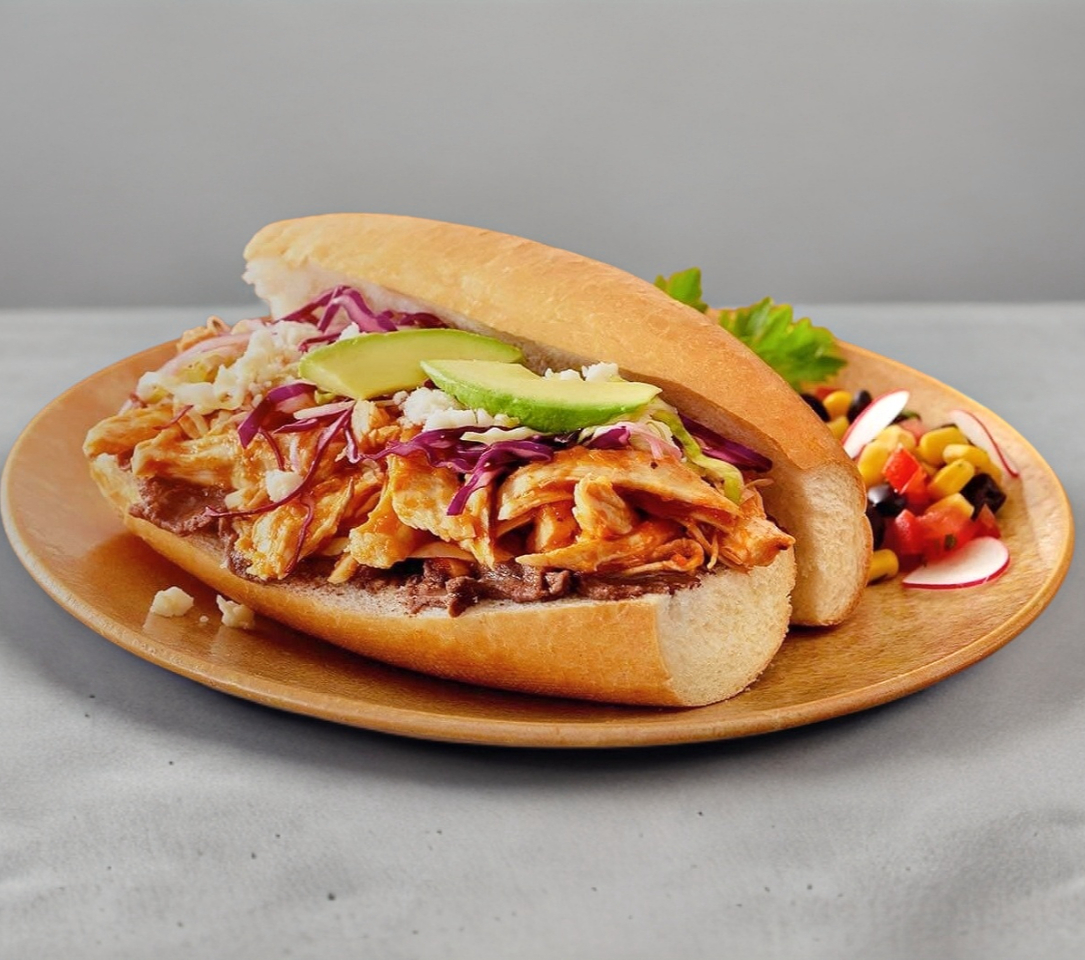 TORTA DE PECHUGA DE POLLO + PAPAS FRITAS + AGUA DE JAMAICA 12oz