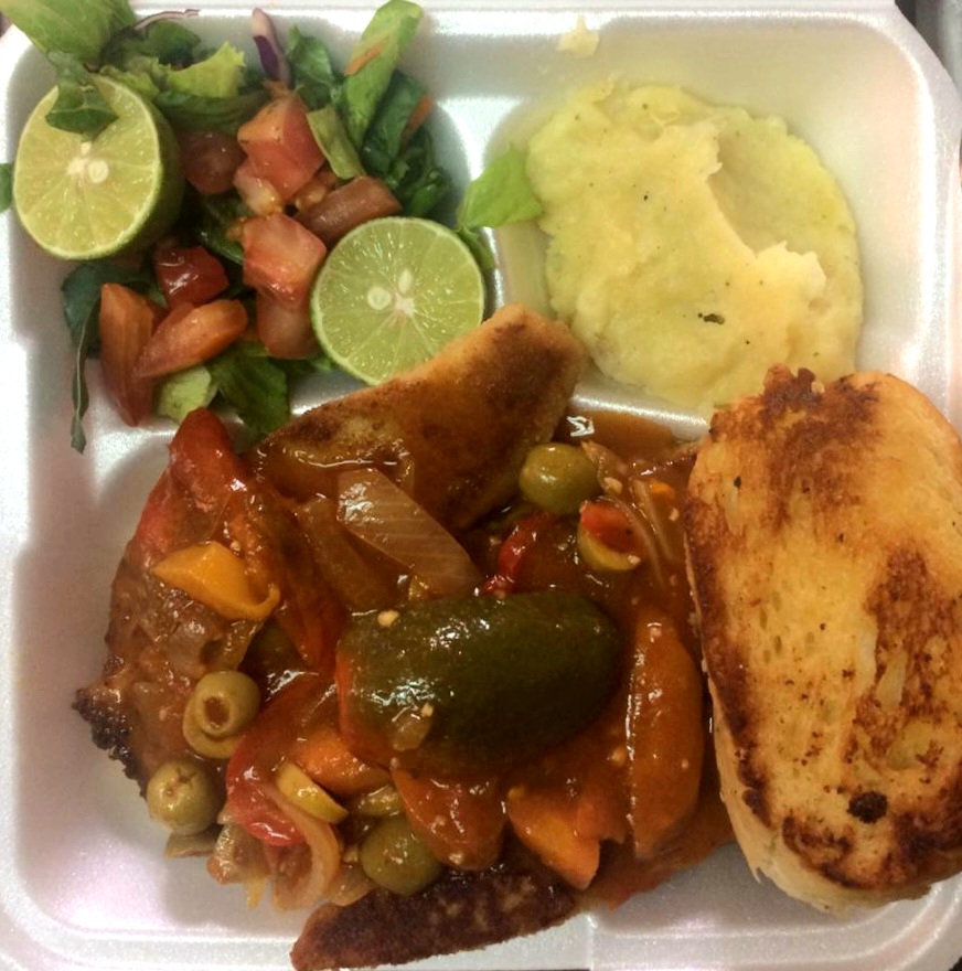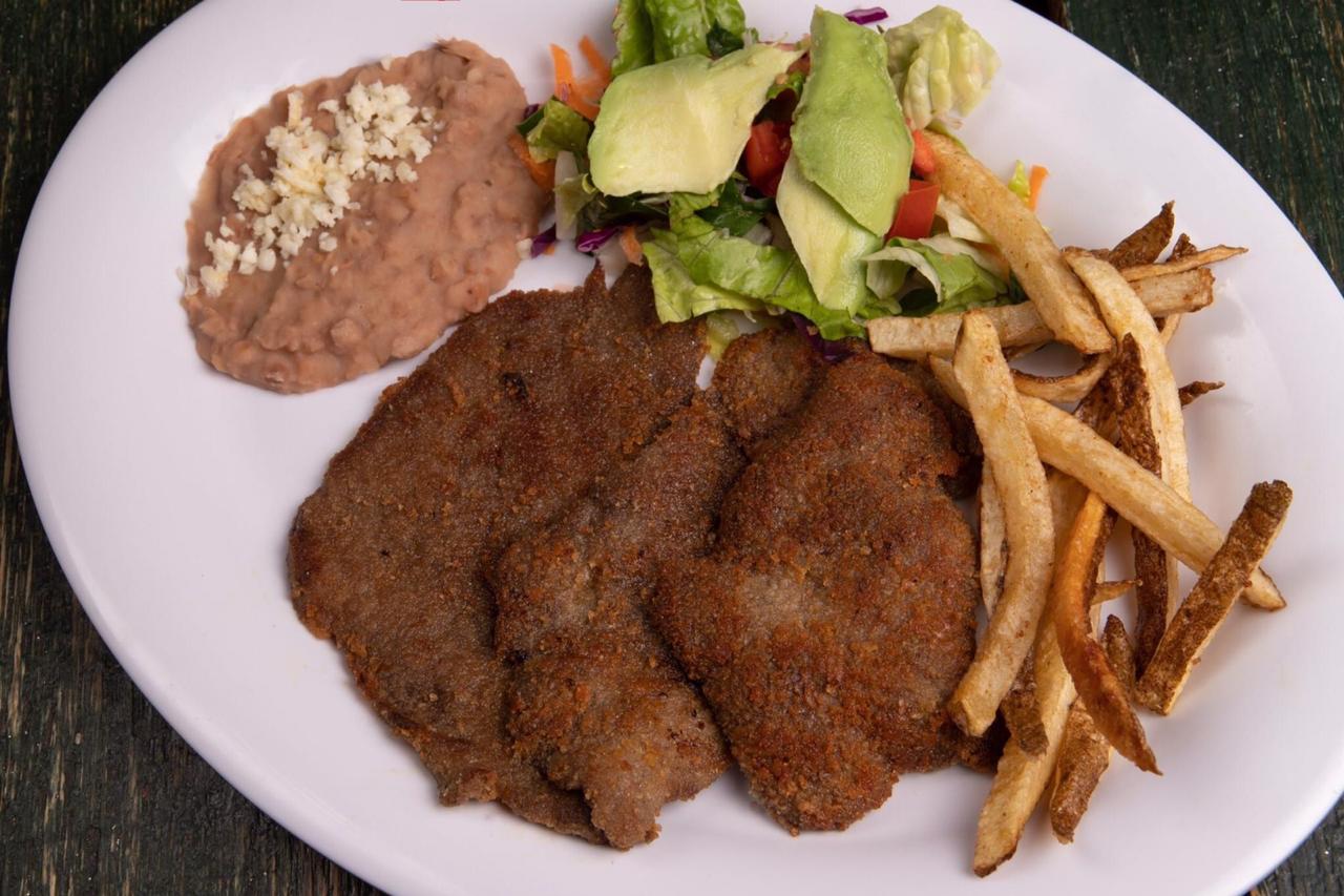Acompañado con papas, frijoles y ensalada fresca.