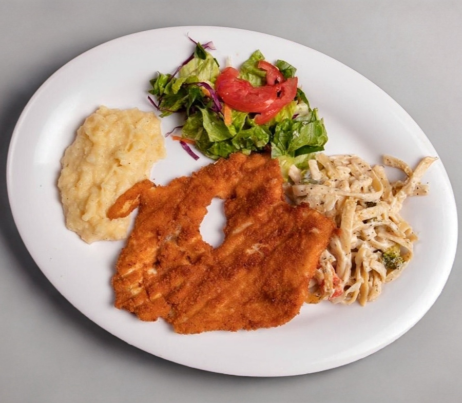 A la plancha o empanizada, con verdura fresca, lechuga, tomate, zanahoria, espinacas, aguacate un toque de aceite de oliva y sazonador.