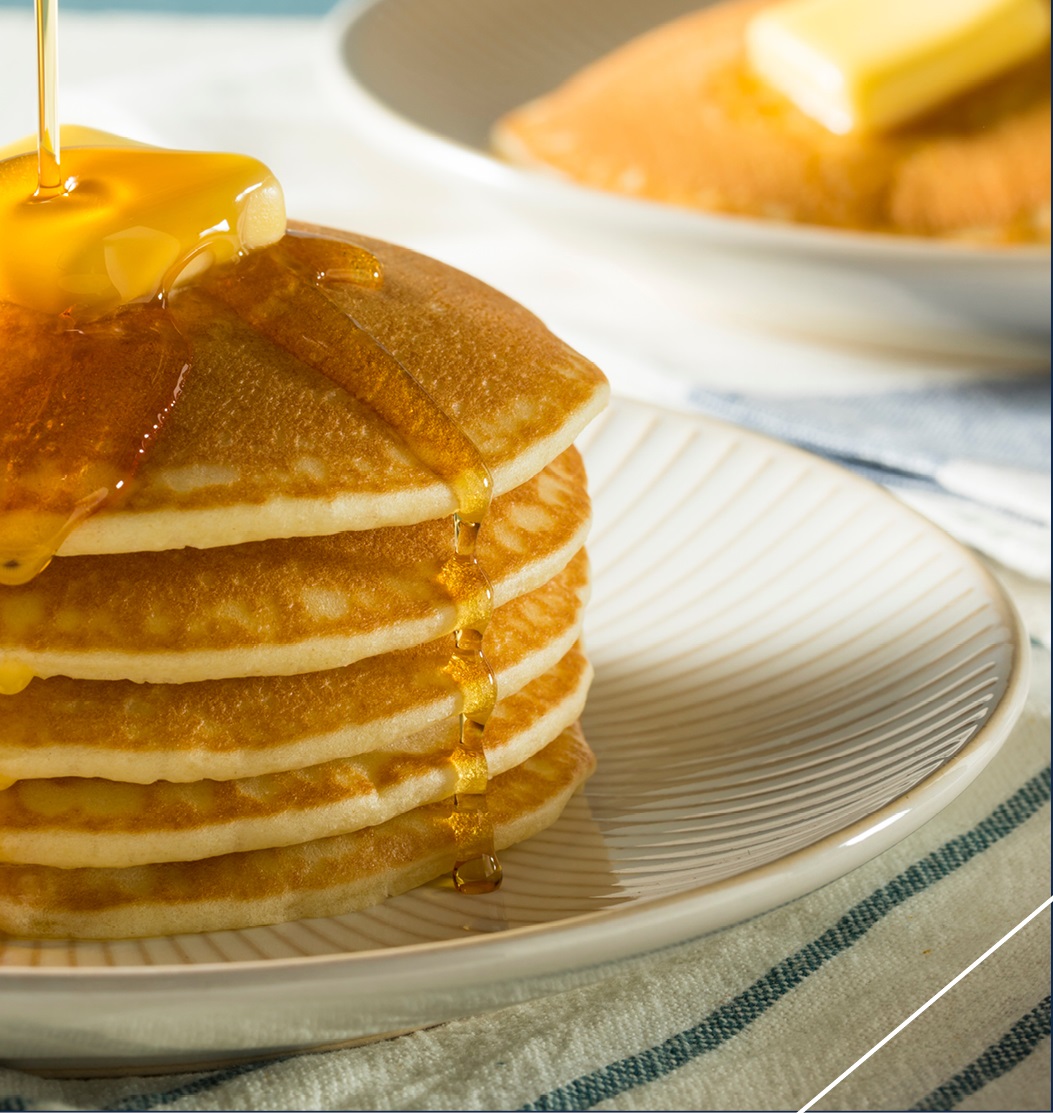 Ricos hot cakes con fruta ó huevo.