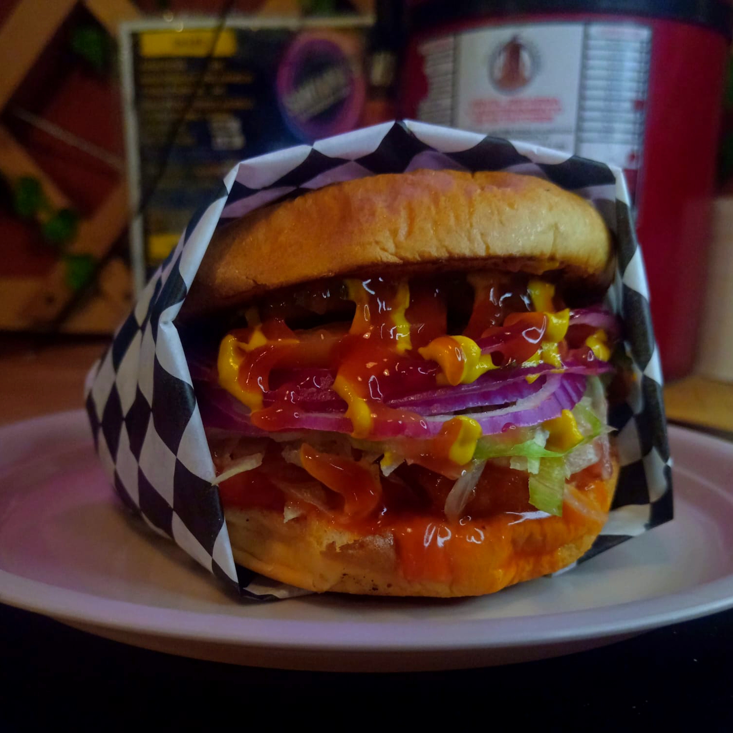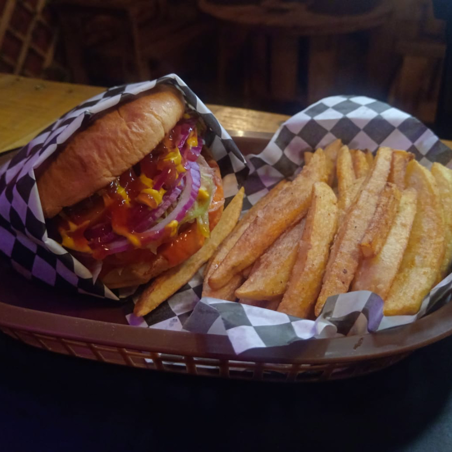 Hamburguesa de pollo empanizado con una deliciosa salsa a elección. Que pudiera ser búfalo, BBQ, BBQ bot, mango habanero. Acompañada con su deliciosa lechuga fresca, con unas deliciosas rodajas de tomate, cebollita morada, queso amarillo americano y sus deliciosos liquidos