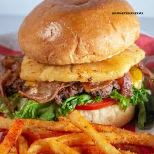 Hamburguesa hawaiana, con pan brioche, carnes de sirlon en 1/2 libra, acompañada con su tomate fresco, cebollita morada, lechuga jugosa, un delicioso queso amarillo americano y una rodaja de piña y sus respectivos líquidos, esto la hace ser una de las mejores opciones para deleitar tu paladar y saciar tu feroz hambre, recomendada al millón.