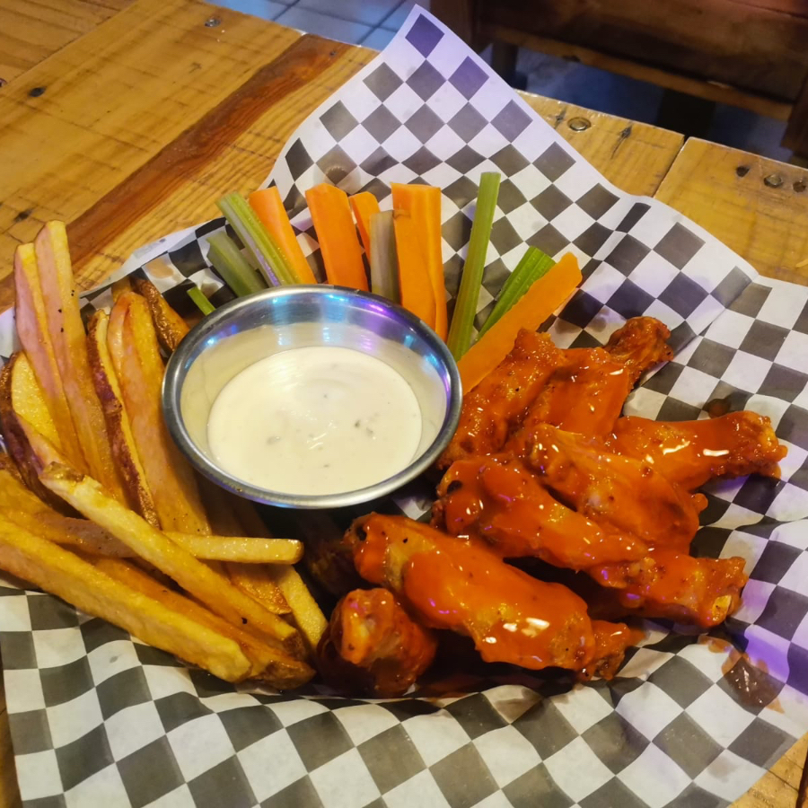 7 Alitas en diversos sabores, como tú las prefieras en (búfalo , BBQ, BBQ Hot, mango Abanero) estás deliciosas y suculentas Alitas son acompañadas con su jugosa guarnición de zanahoria y apio, y unas deliciosas papitas fritas. Lleva incluida una aderezo ranch.