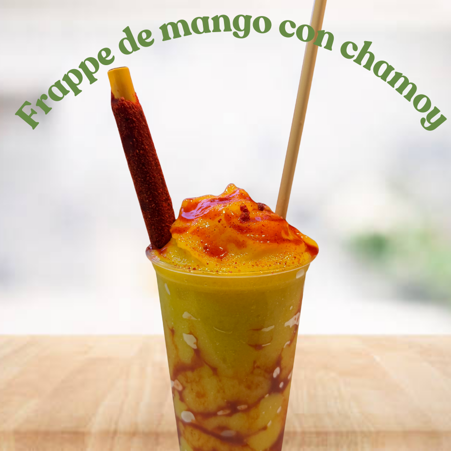 Delicioso frappe de mango natural con chamoy en vaso de 16oz