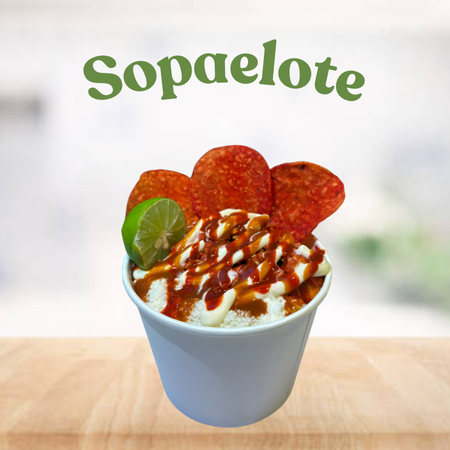 sopa instantánea preparada al momento con salsas, limón, papitas crujientes a elegir, queso amarillo derretido y granitos de elote. ¡Una mezcla irresistible de texturas y sabores que no podrás dejar de probar!