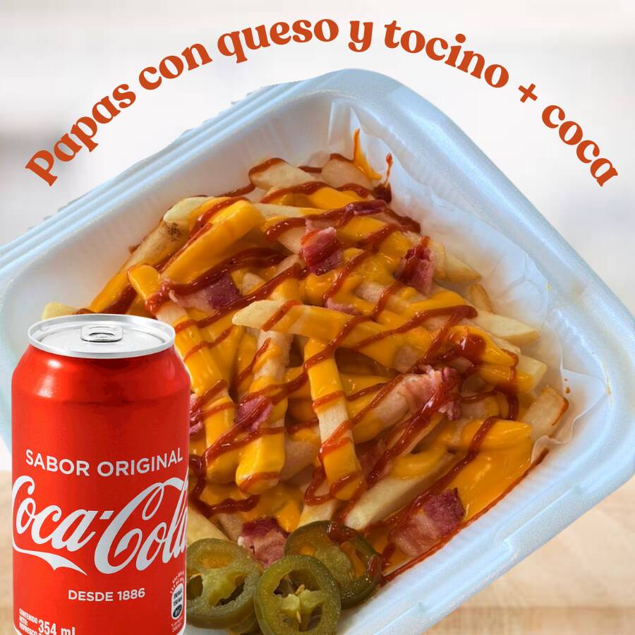 COCA COLA 355 ML*1 + Papas a La Francesa con Queso Y tocino*1