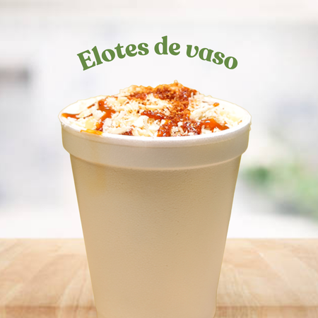 Vaso individual con elotes tiernos preparados al momento, a elegir(mayonesa, mantequilla, queso rallado y chile al gusto). ¡El clásico sabor mexicano en tamaño perfecto para tu antojo!