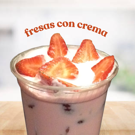 Fresas congeladas cortadas , bañad6as con nuestra crema especial y un toq6ue de leche condensada. Dulces, cremosas y simplemente irresistible6s. ¡El postre favorito de todos!
