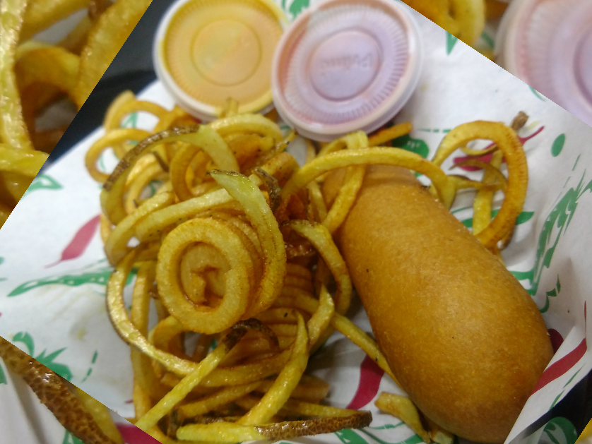 mini banderillas con papas fritas y jugo gratis ketshup