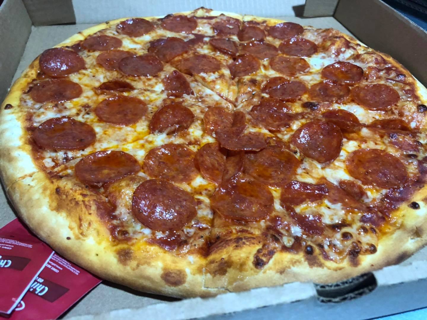 Pizza extra grande de 16 pulgadas con doble pepperoni más mozzarella.