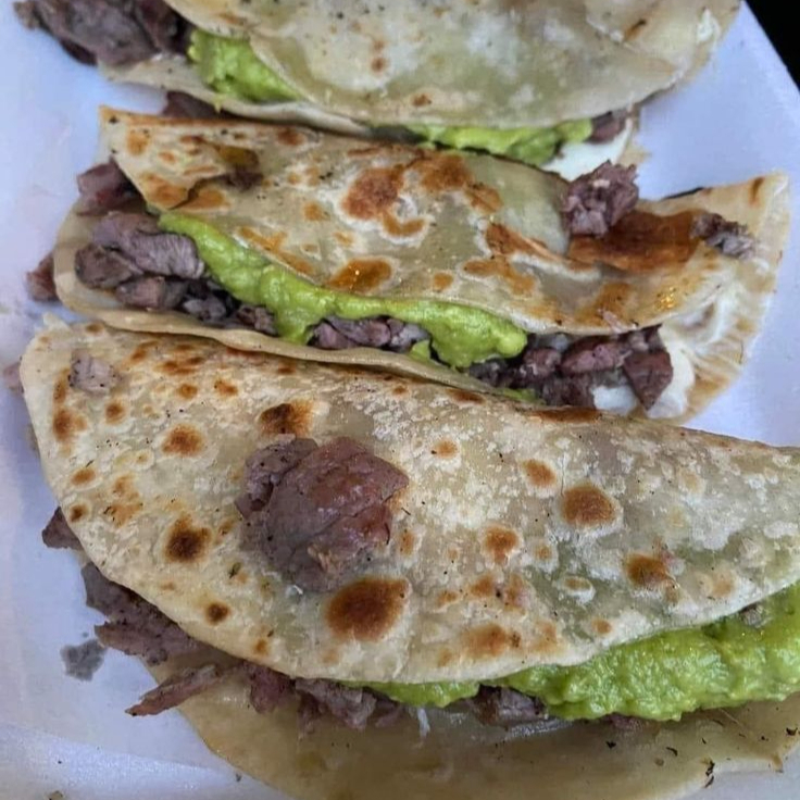 Tortilla harina, queso menonita, sirloin, aguacate