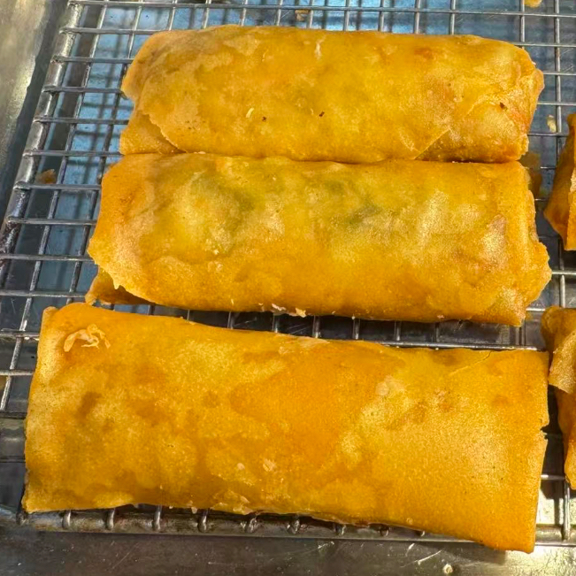 Tortilla de harina frita con repollo y trozos de pollo.