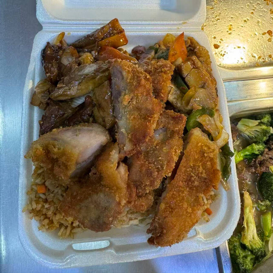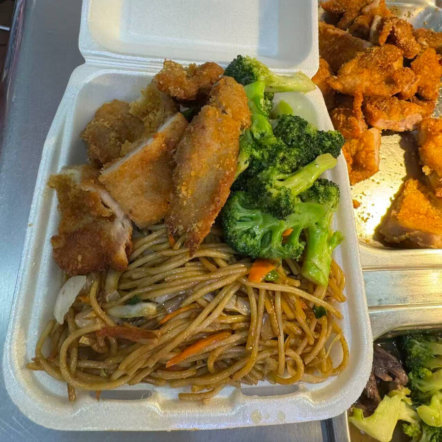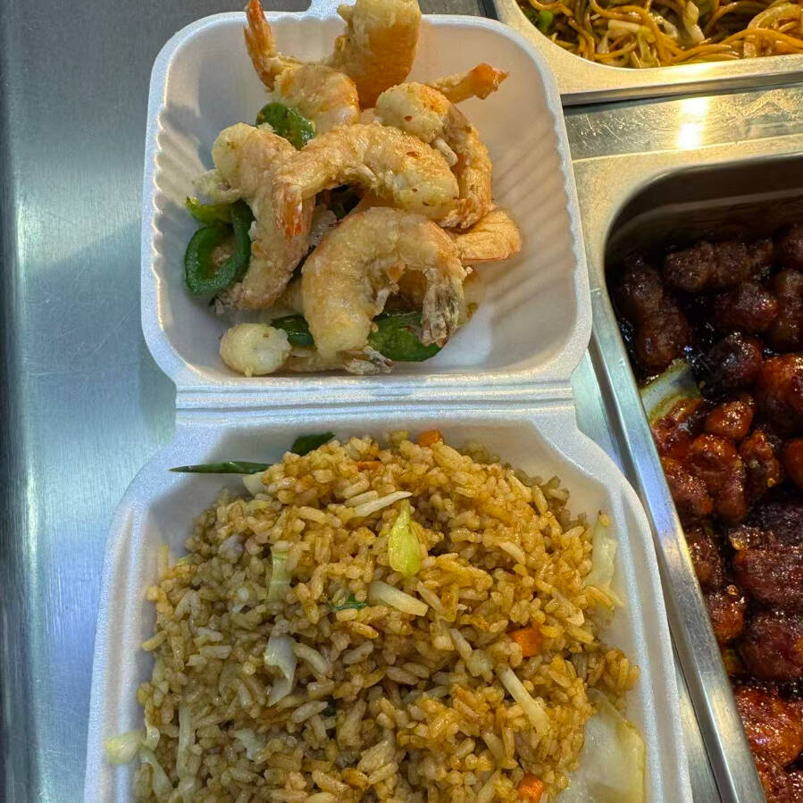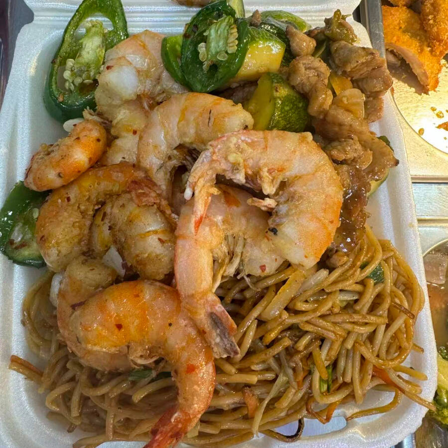 Arroz y/o pasta, 2 guisos a escoger más camarón.