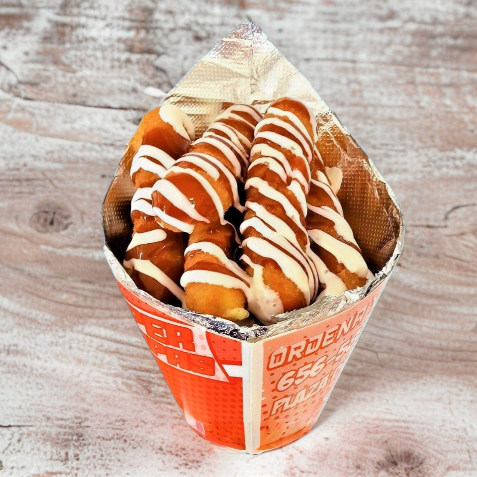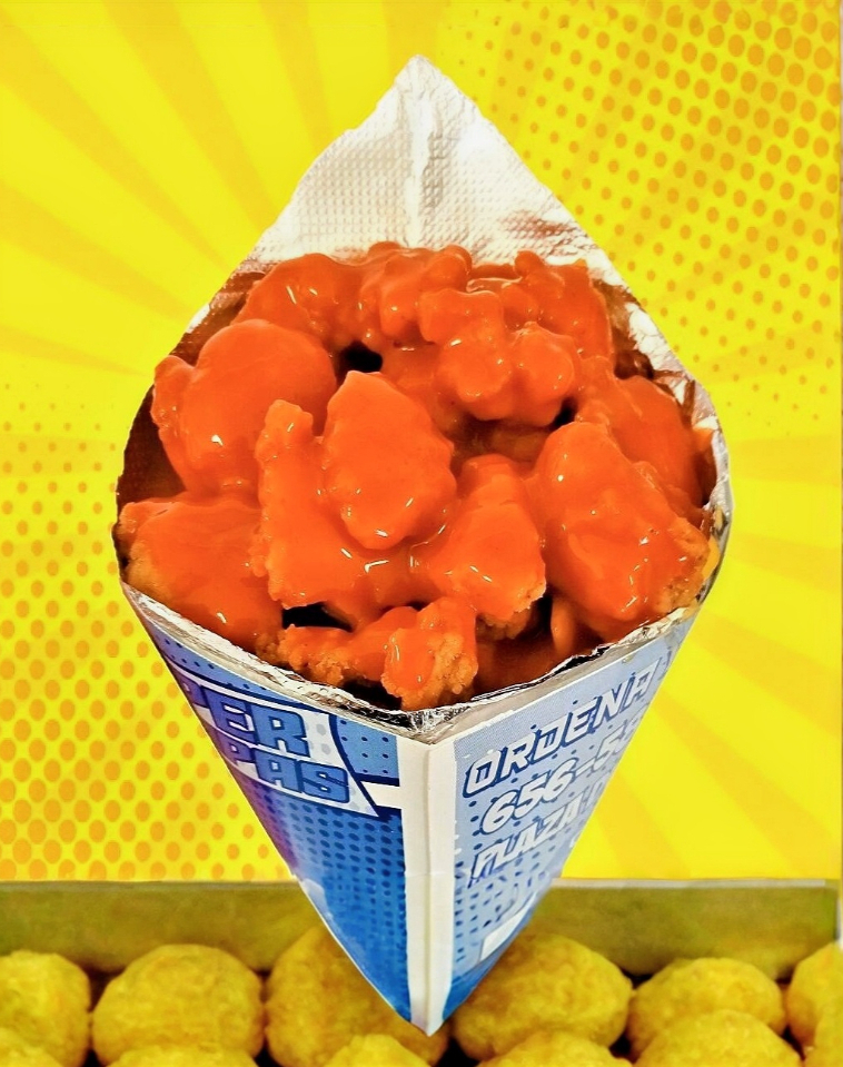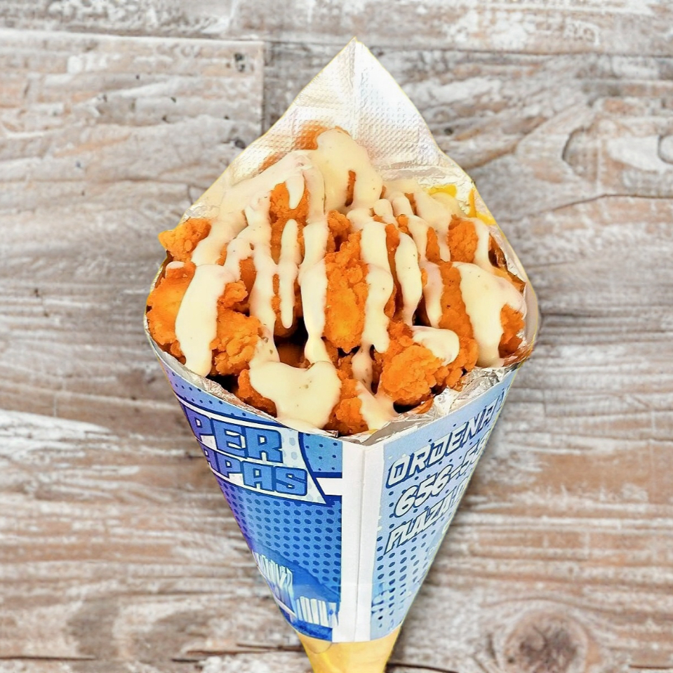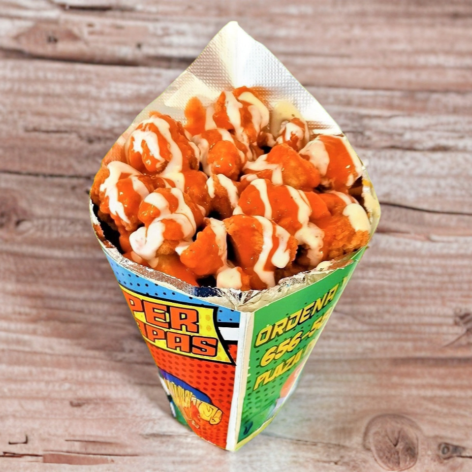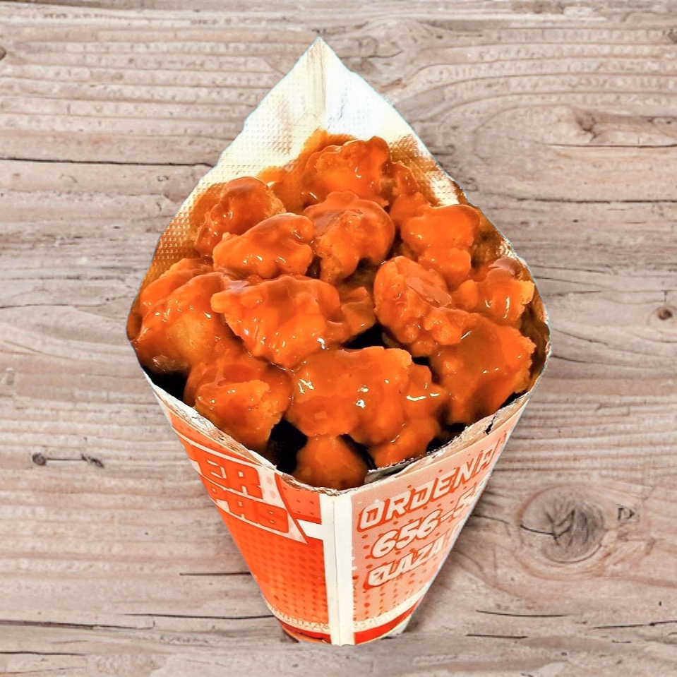 Cono mediano de boneless (sin papas fritas), con 2 de sus salsas favoritas.