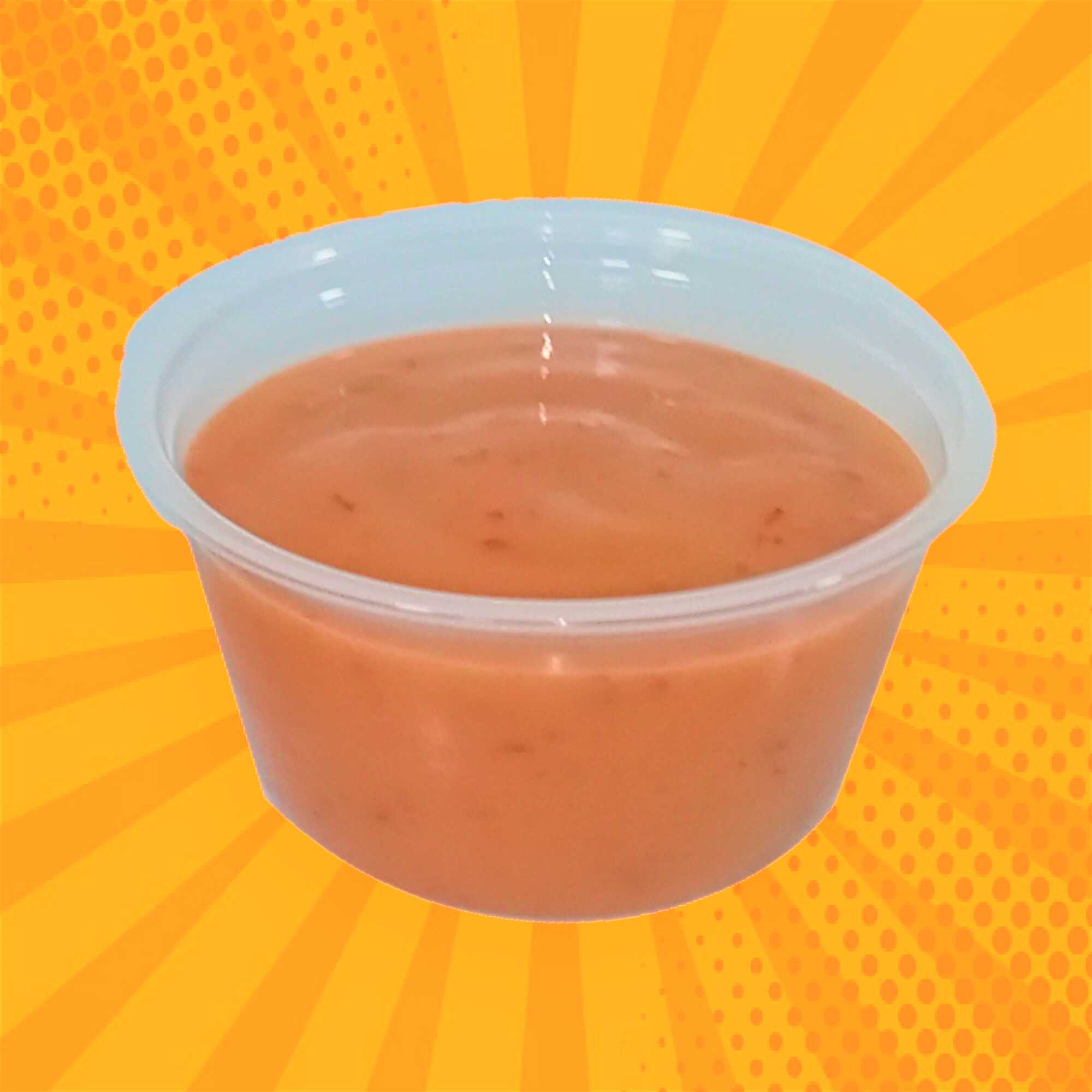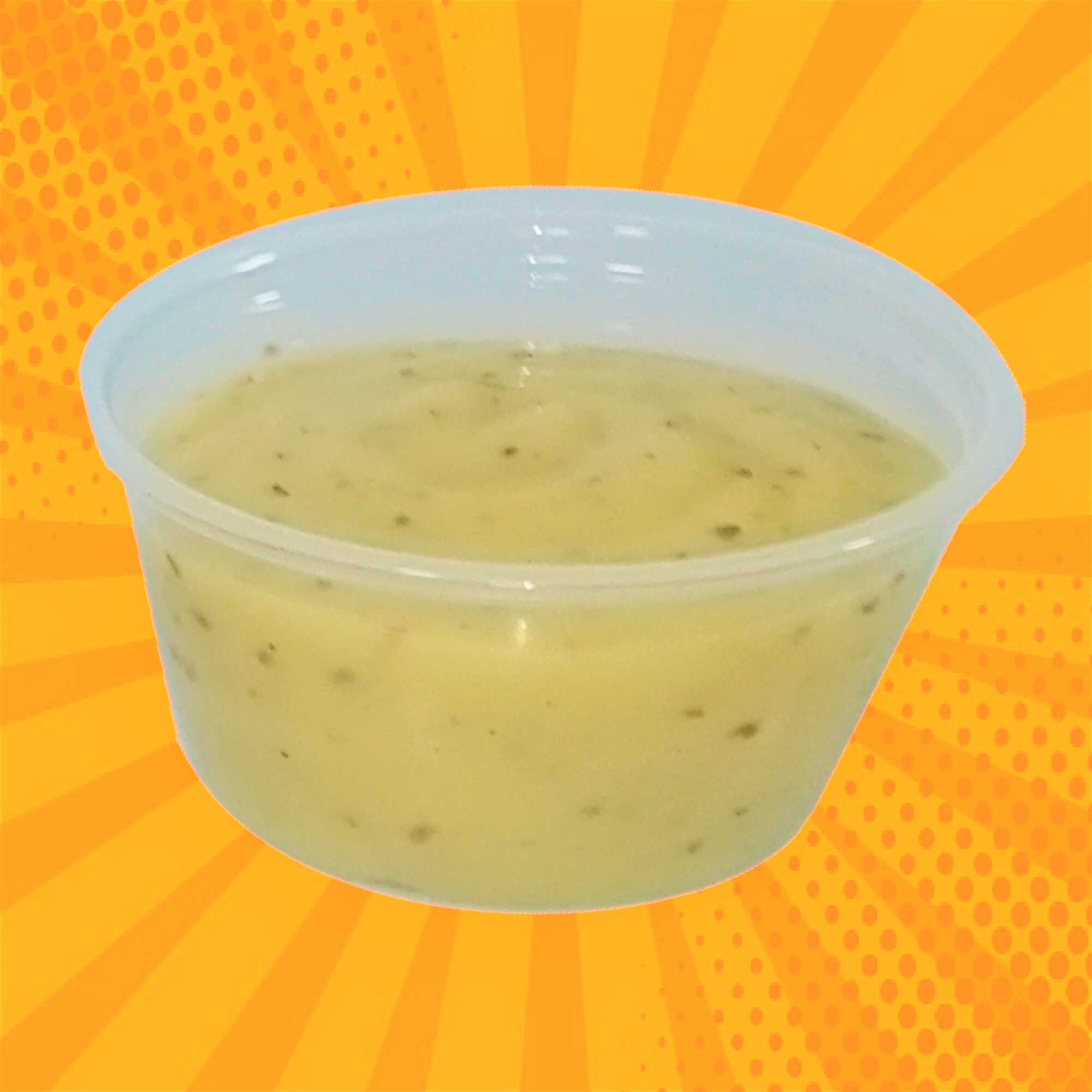 Porción de queso amarillo con jalapeño, servida en un vasito aparte (La foto muestra el vasito de 4 oz. y de 2 oz. para comparar tamaños).