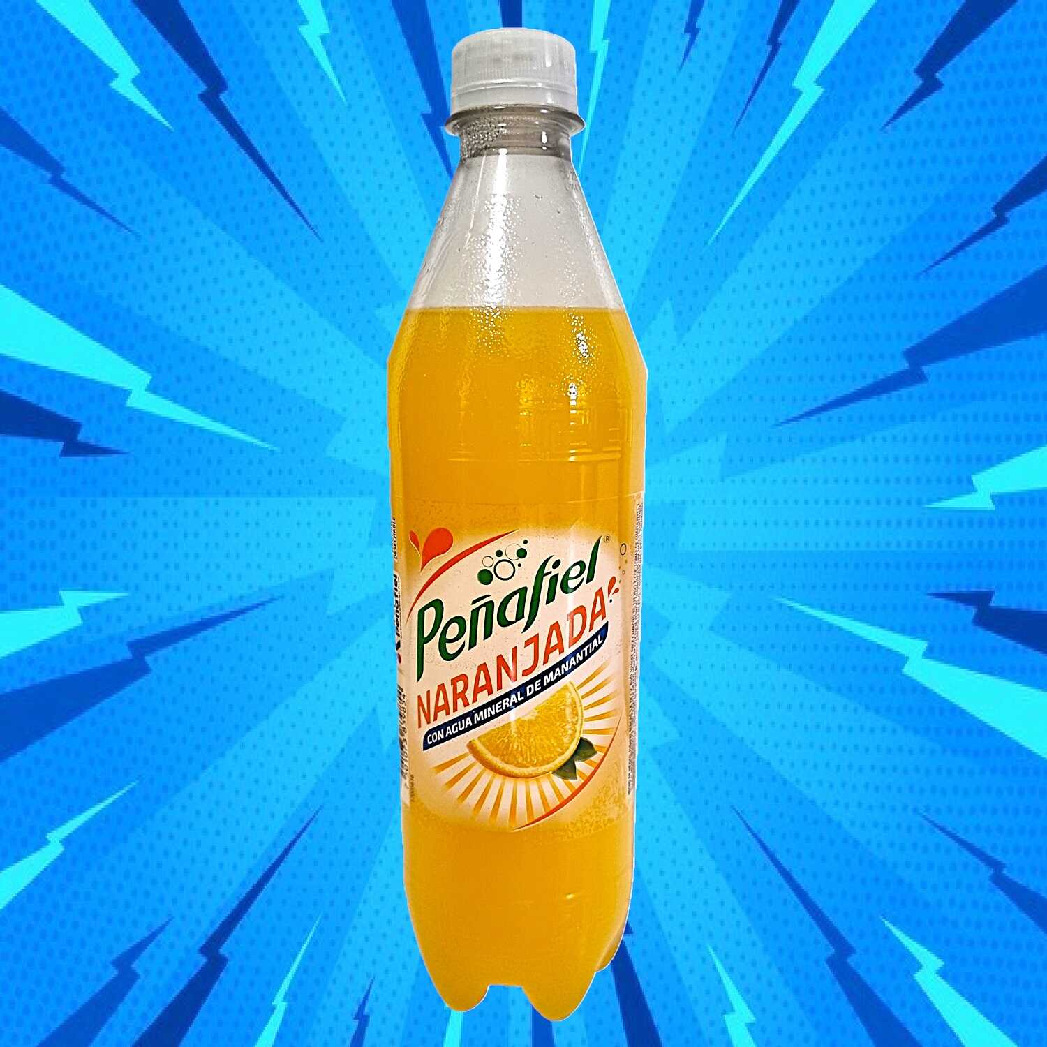 Botella de 600 ml. Agua mineral de manantial sabor naranja.