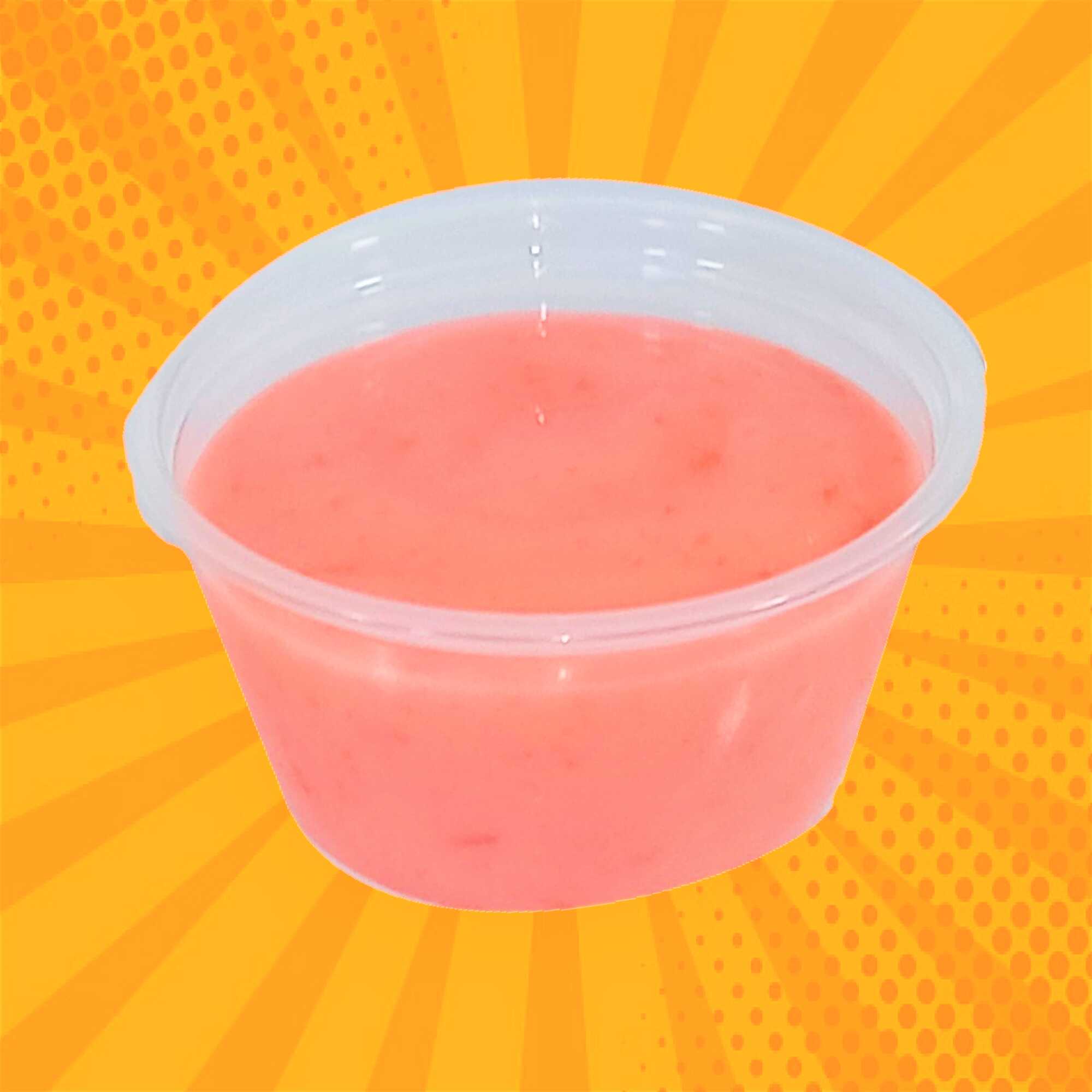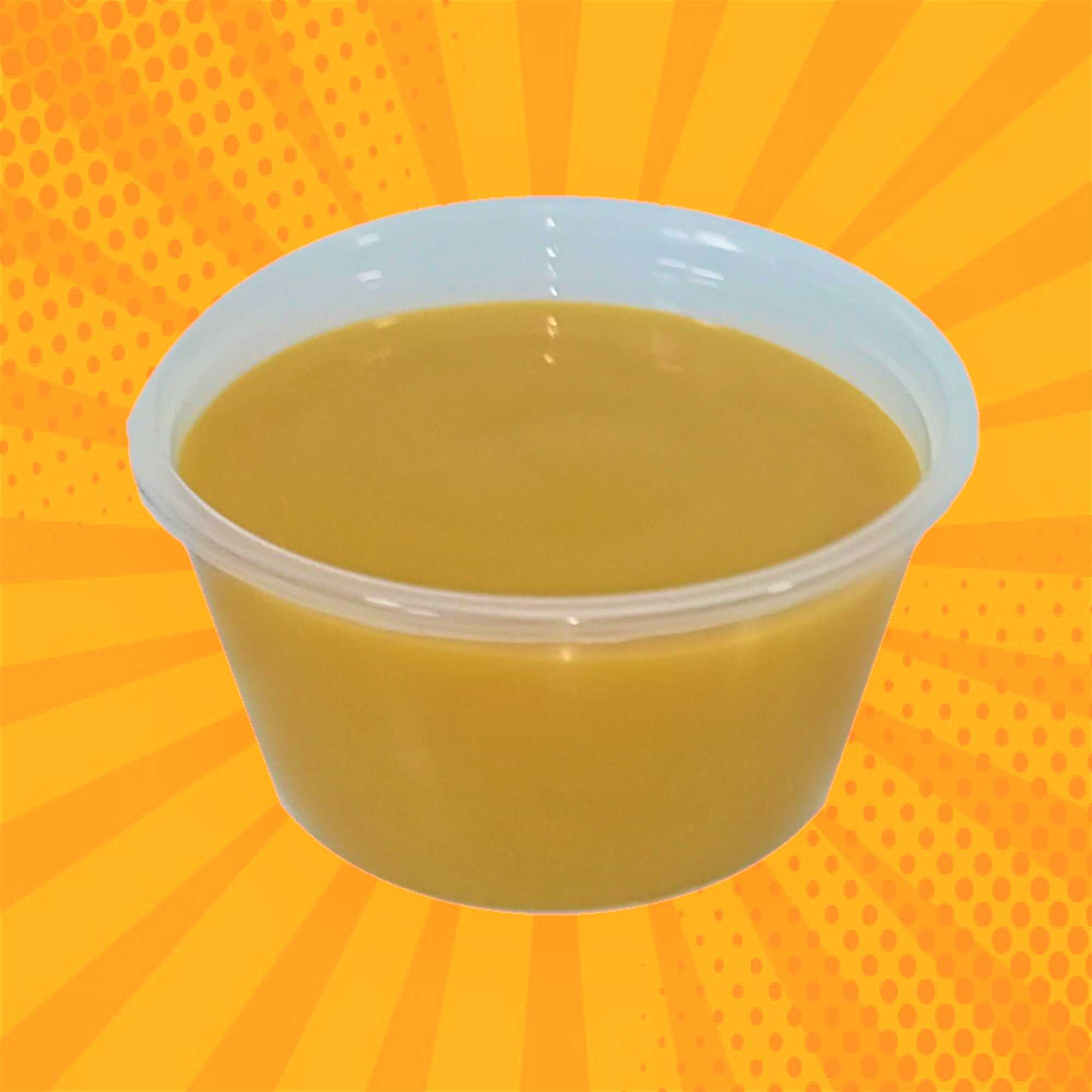 Porción de queso amarillo, servida en un vasito aparte (La foto muestra el vasito de 4 oz. y de 2 oz. para comparar tamaños).