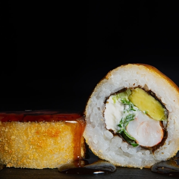 Philadelphia aguacate surimi pepino bañado en chipotle