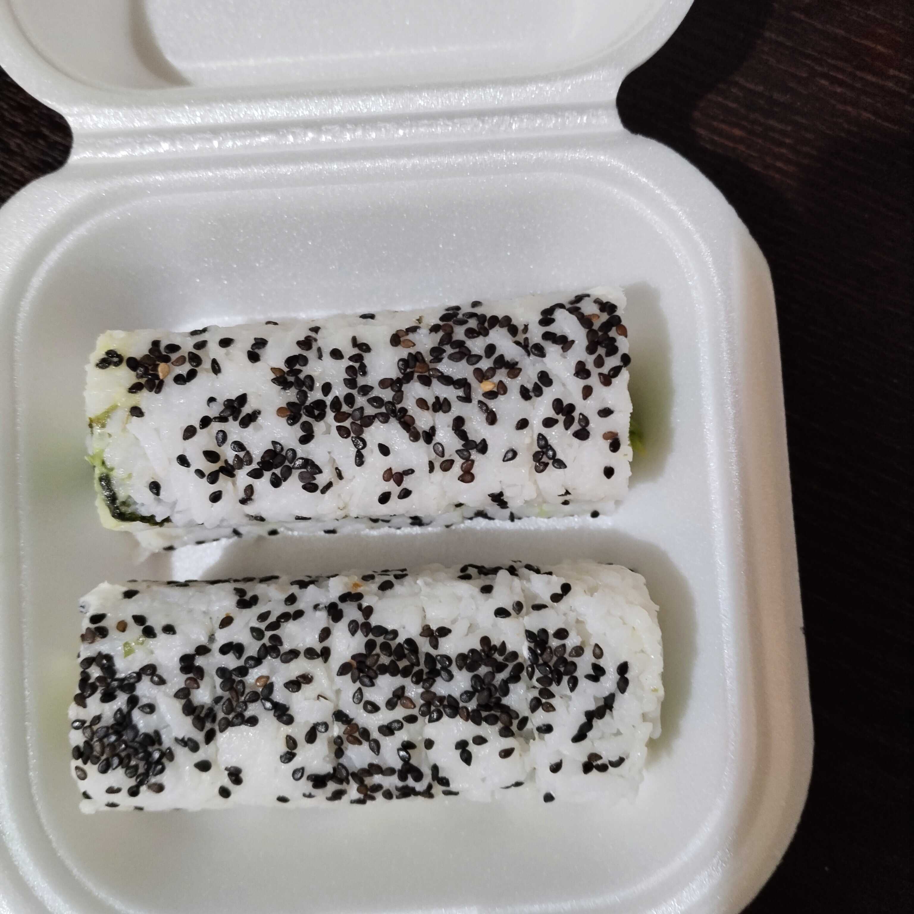 Por dentro: pepino, aguacate y surimi por encima: ajonjolín