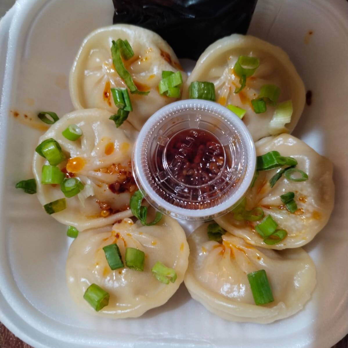 Dumpling de pollo con salsa macha