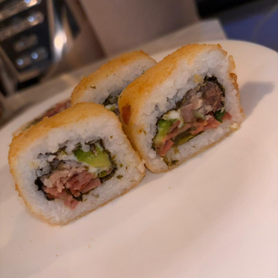Philadelphia, Aguacate, Carne, Pastor Y Chiles Toreados, Bañado en Tartara.