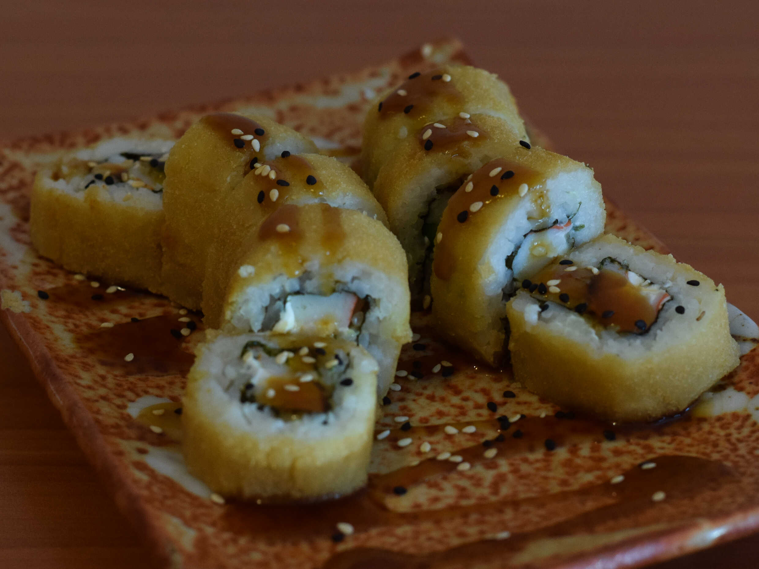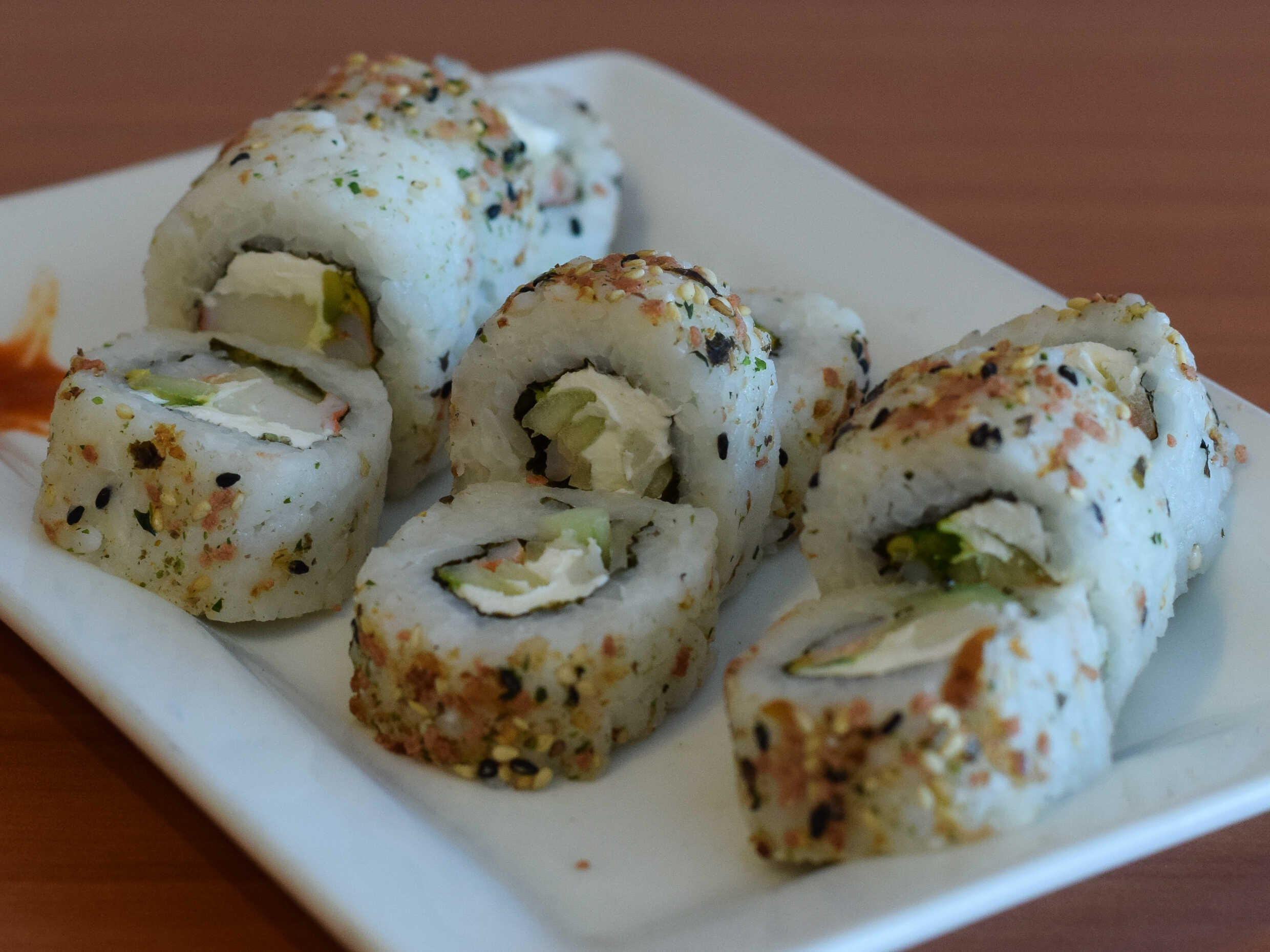 Philadelphia aguacate surimi pepino bañado en ajonjolí