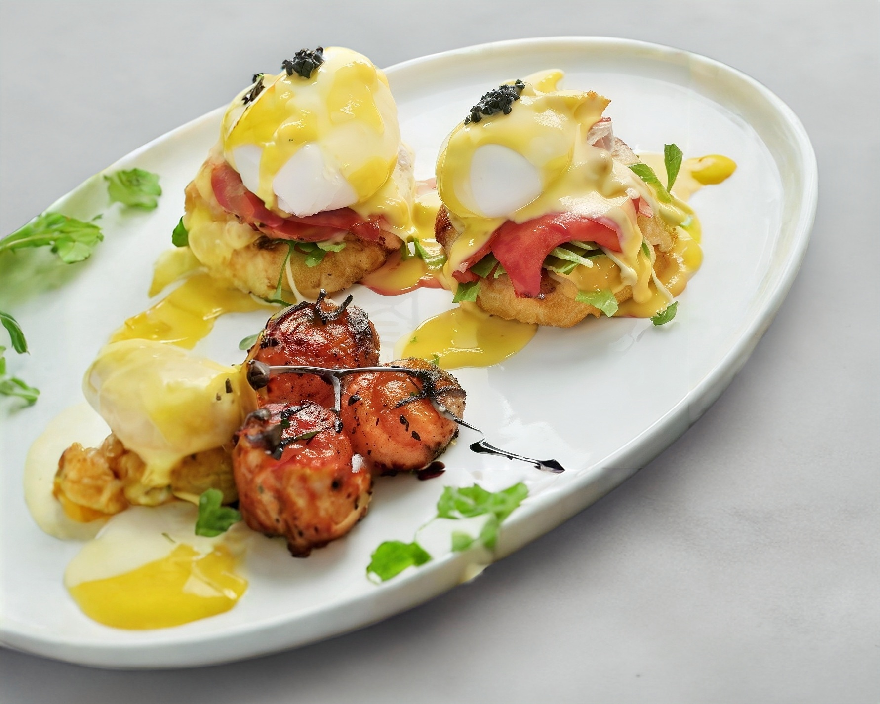 PHILADELPHIA CAMARON Y SURIMI CUBIERTO EN AGUACATE EN SALSA TERIYAKI