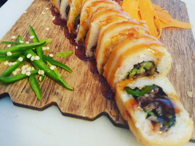 Filete de res aguacate camaron filadelfia toreados y furikake