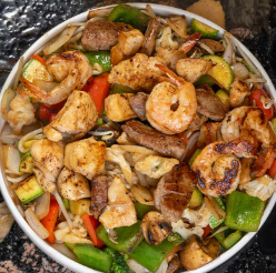 Arroz frito con Verduras, Camaron, Rib Eye, Pollo.
