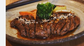Por dentro Rib eye empanizado, aguacate, chiles toreados, cangrejo, por fuera cubierto de queso Philadelphia.