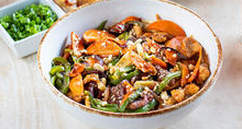 Mix de verduras salteadas y sazonadas con proteína a elegir bañados en salsa especial teriyaki, acompañado con arroz Gohan.