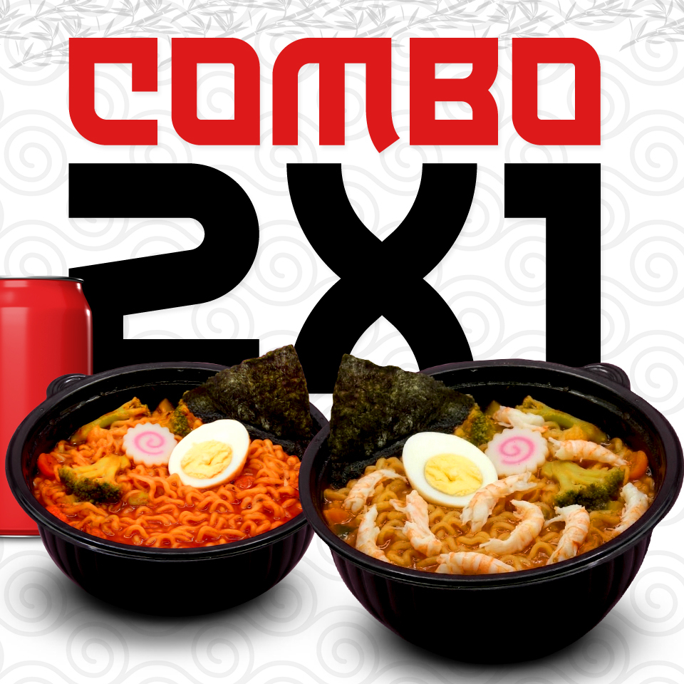 Combo de refresco, Ramen con Topping y una Ramen sencilla de regalo.