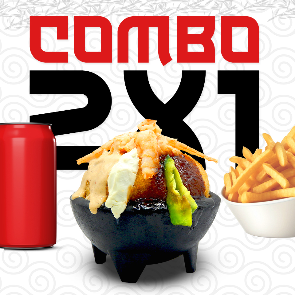 Combo de papas fritas, refresco y Gada Ball con una Sushi Ball extra de regalo.