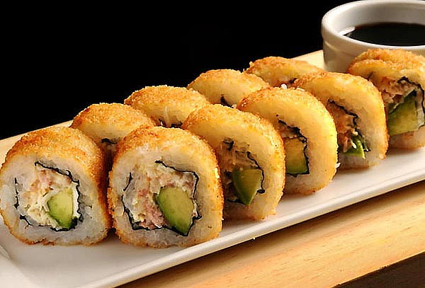 Philadephia, aguacate, surimi, pepino bañado en chipotle.