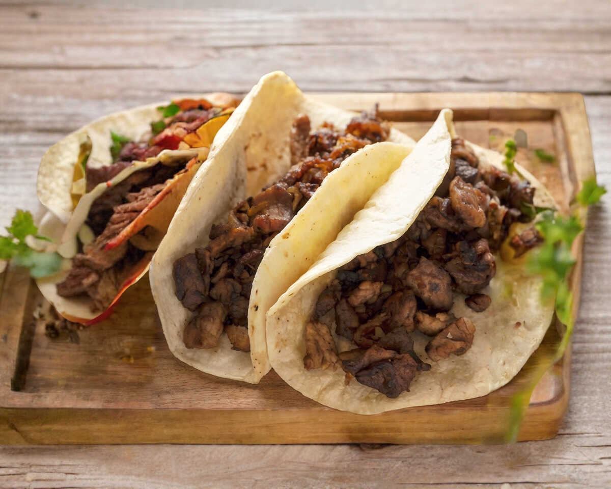 4 Tacos de Bisteck Acompañados con Salsas y Verdura