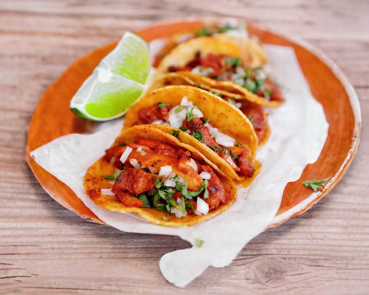 4 Tacos de Pastor Acompañado con Salsas y Verduras