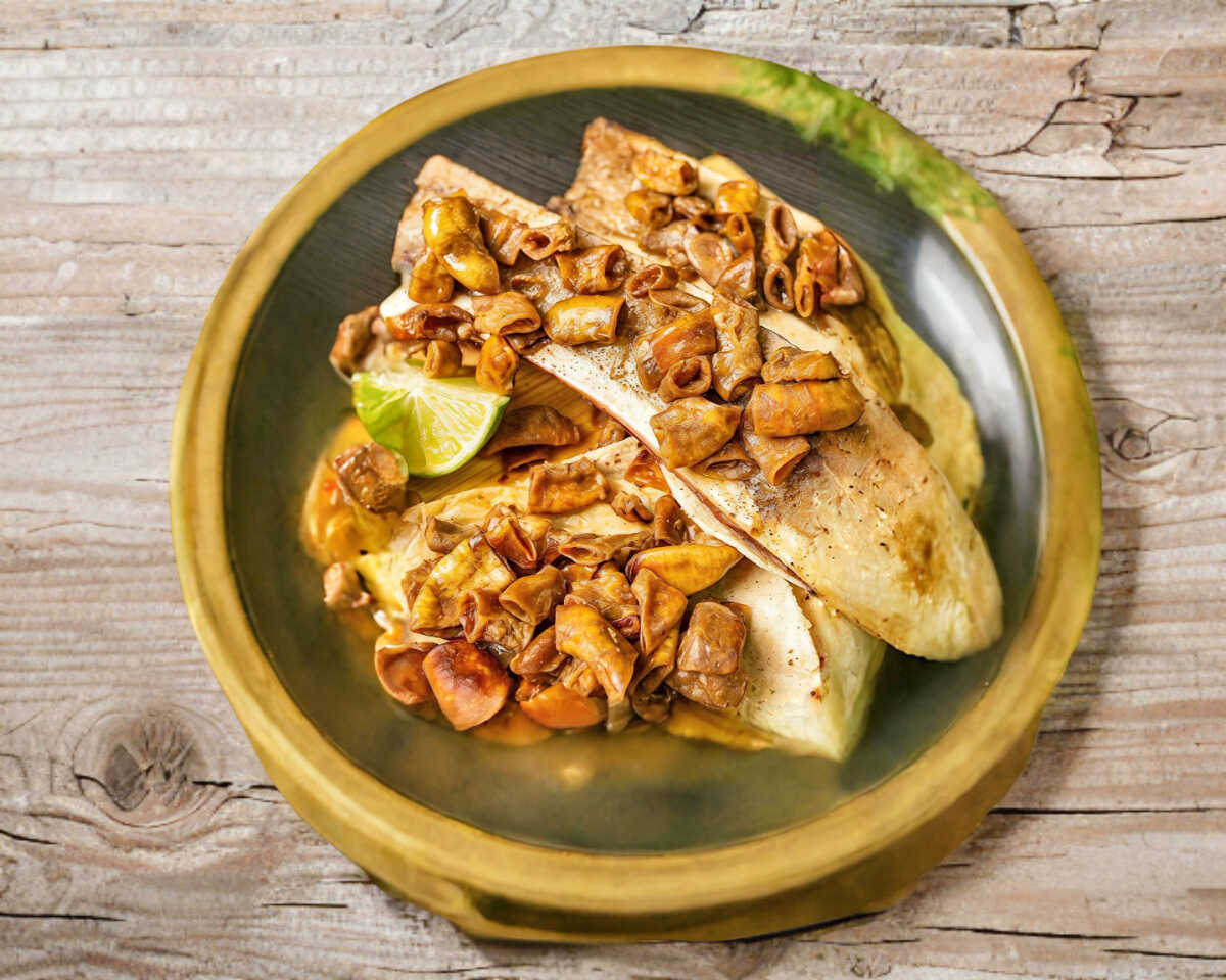4 Tacos de Buche Acompañados con Salsas y Verduras