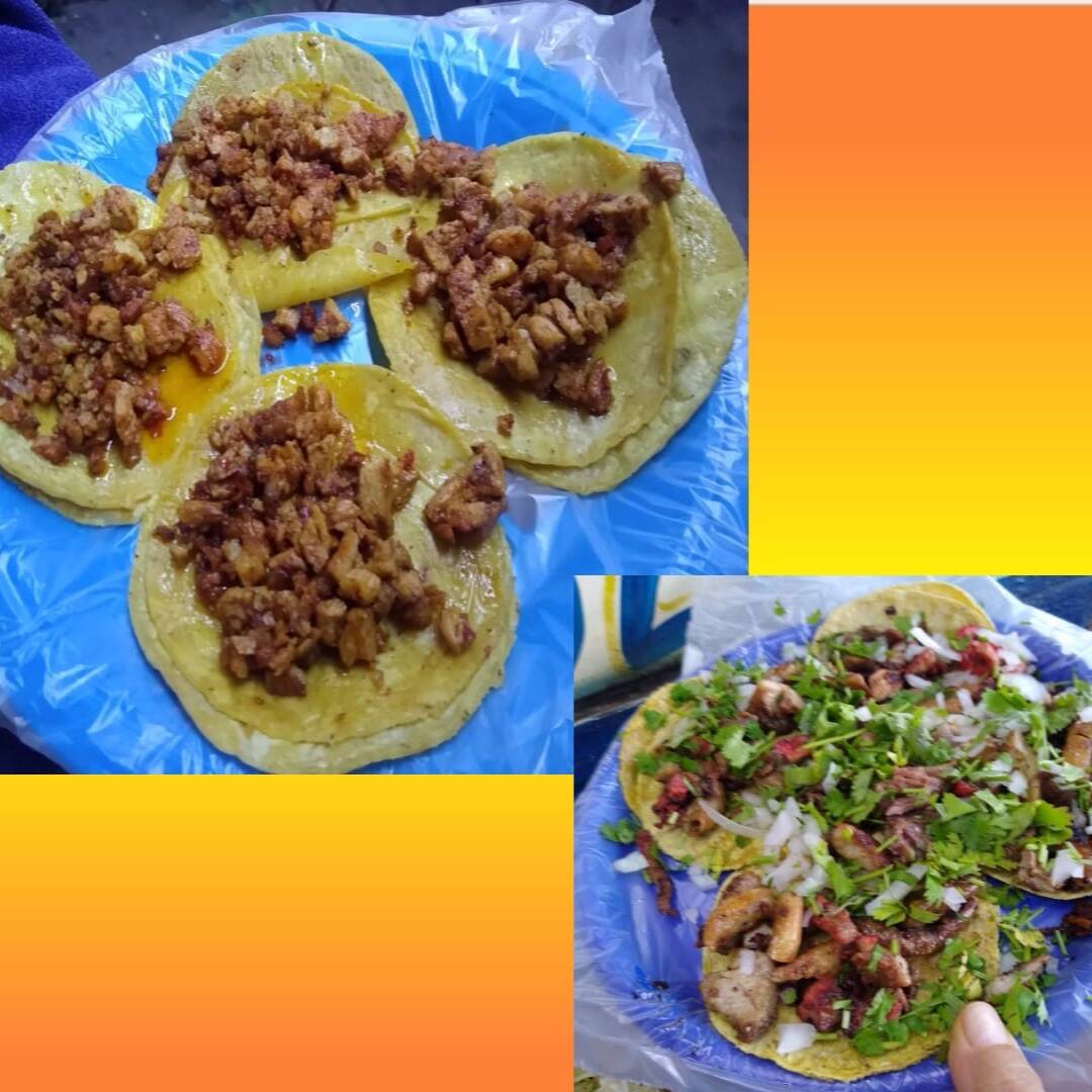 7 Tacos con tortilla sencila. Incluye cebolla 🧅, cilantro , repollo 🥦 y rábano
