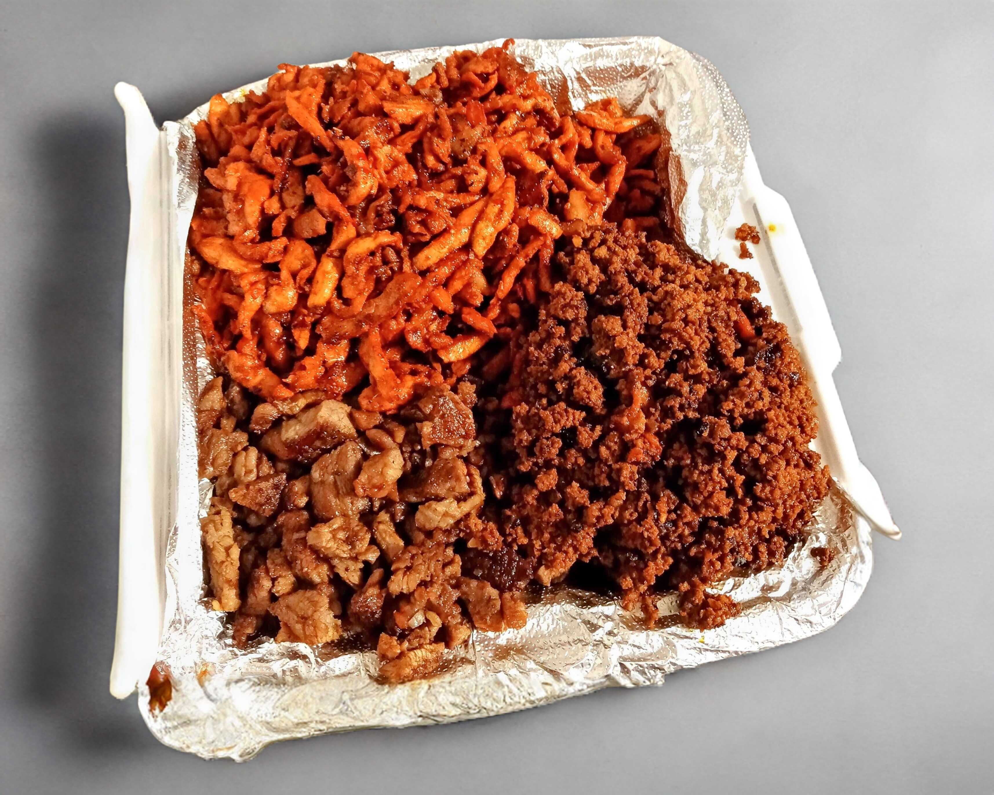 Incluye tortillas, guacamole, salsa verde, salsa roja, limones, chiles toreados, cebolla morada con habanero, cebollita asada, piña, pepinos, cilantro y cebolla cruda.