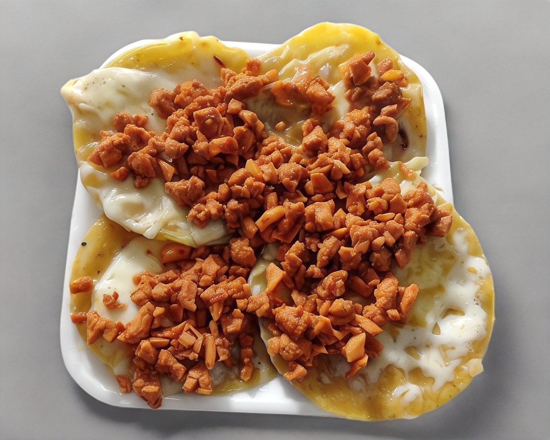 TOSTITOS MORADOS CON QUESO FRIJOLES Y QUESO AMARILLO Y CHILE