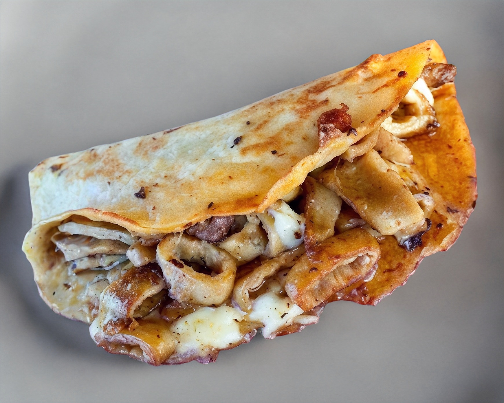 quesadilla de buche acompañada de salsas verde y roja guacamole cebolla y cilantro limon