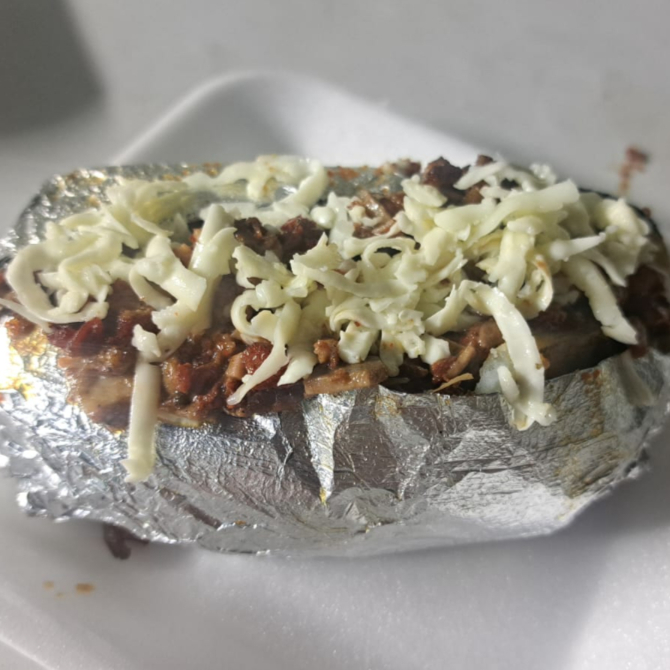 250 gramos de pastor, tortillas, 2 sodas, 2 papas asadas con mantequilla, salsas y limon