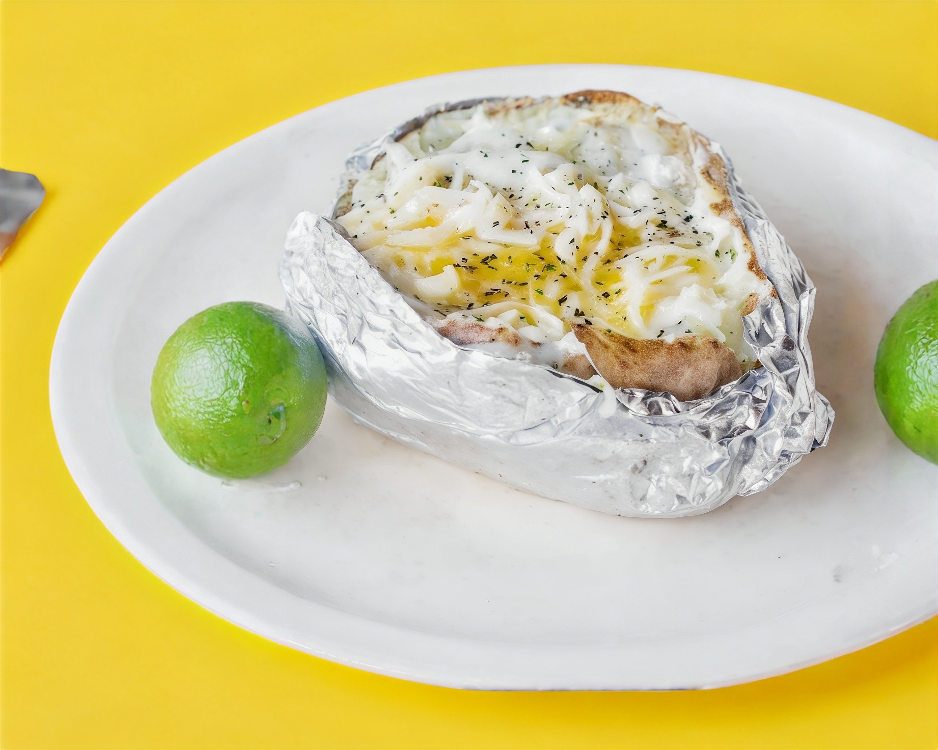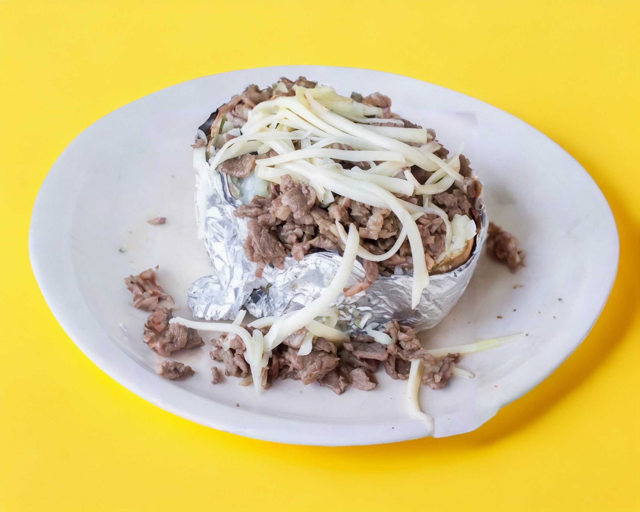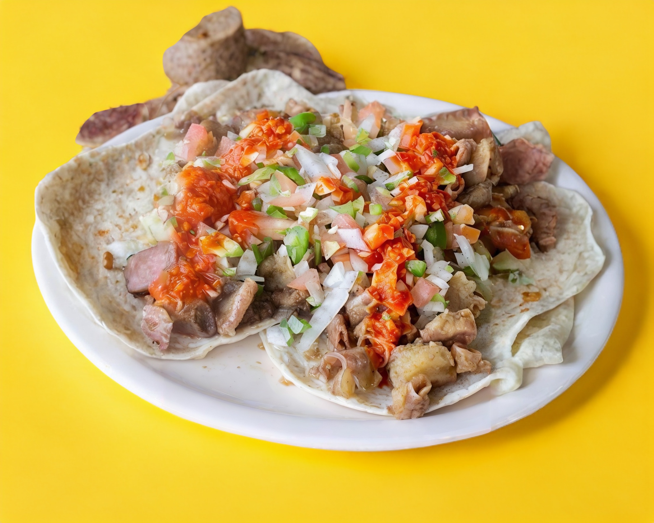 Preparada con sirlon, carne asada, queso, frijoles y pico de gallo