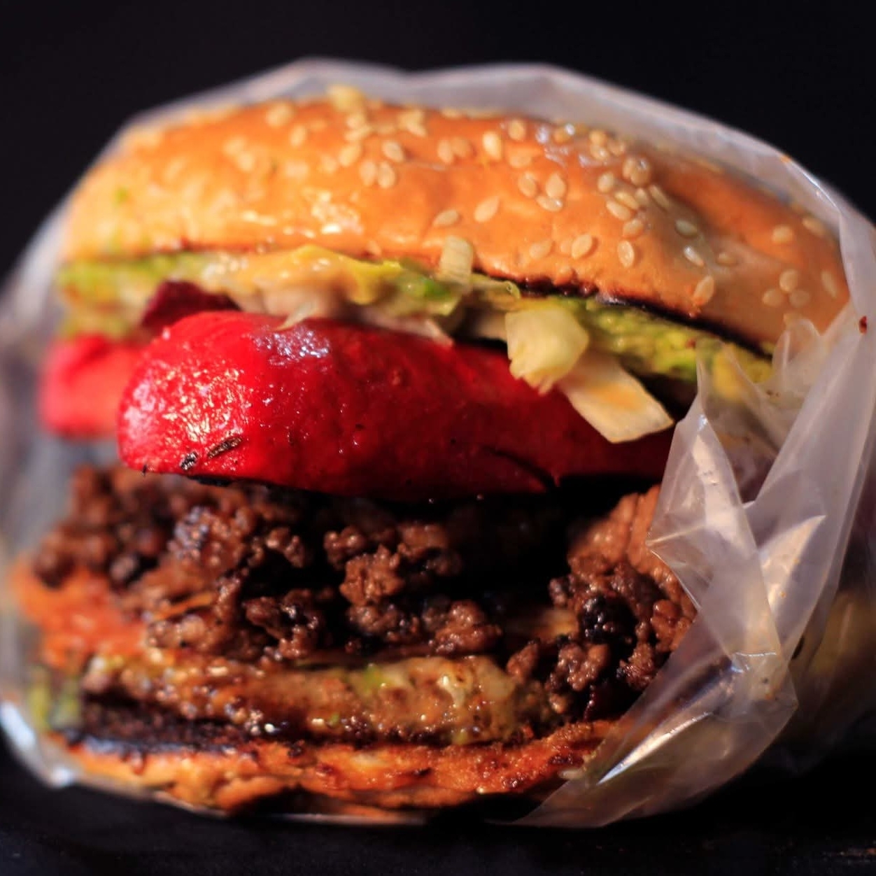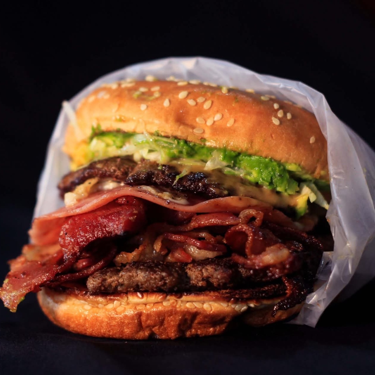 Pan, aguacate, doble carne sirloin, winnie, lechuga, jamón, queso blanco, mayonesa, mostaza, catsup y pepinillos.