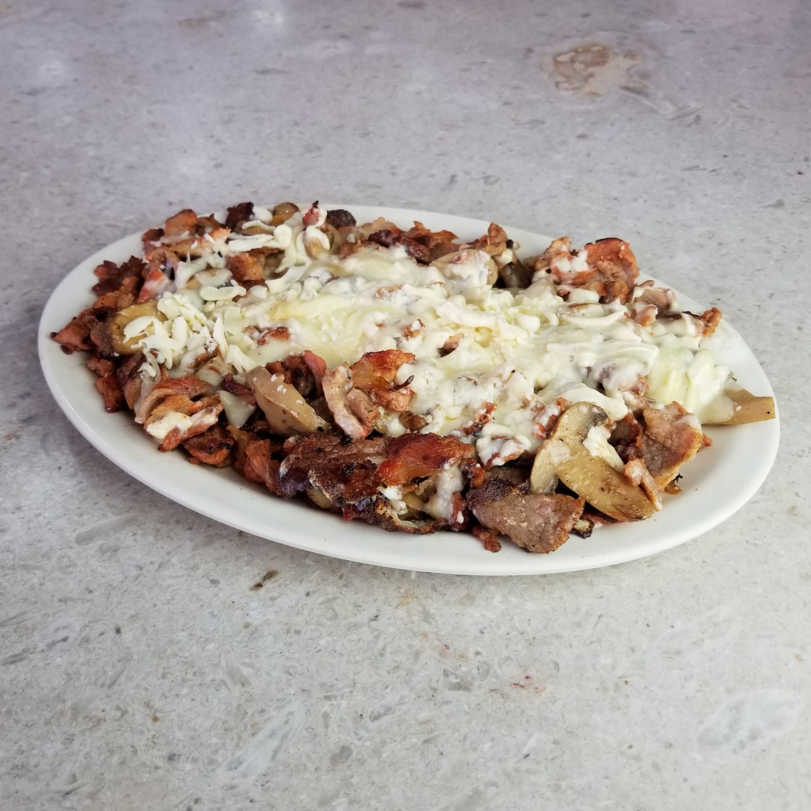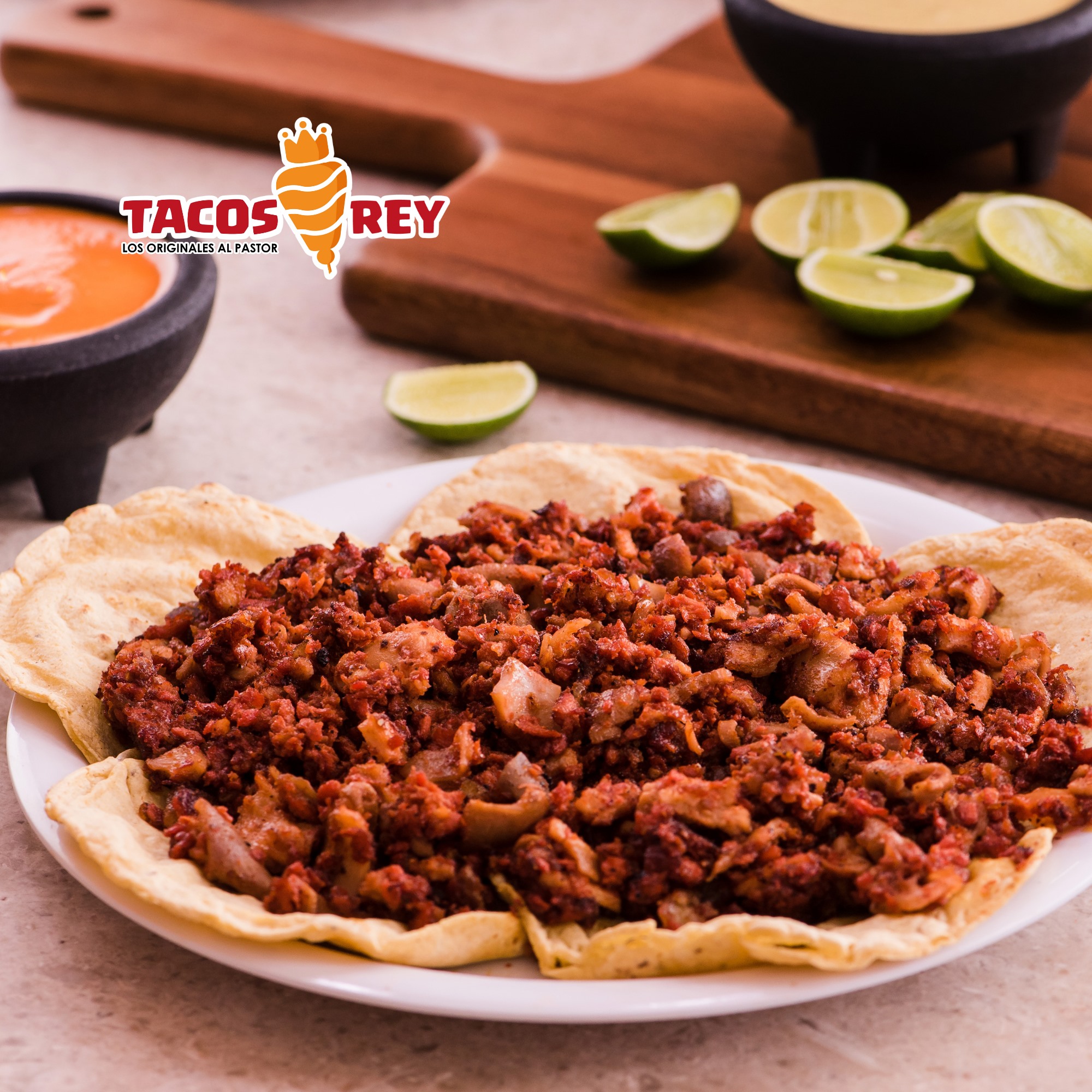 Pastor, con Chile Morron, Cebolla, Jamón, Tocino, Queso, Tortillas y Salsas
